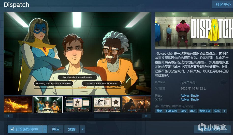 美漫风格的超级英雄调度游戏,Steam有Demo可以试玩。