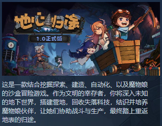 2025年7月19日,《地心归途》发行了1.0正式版,目前累计销量过10万份,虽然距离赚钱还有一段距离,但至少给了团队走下去的信心。