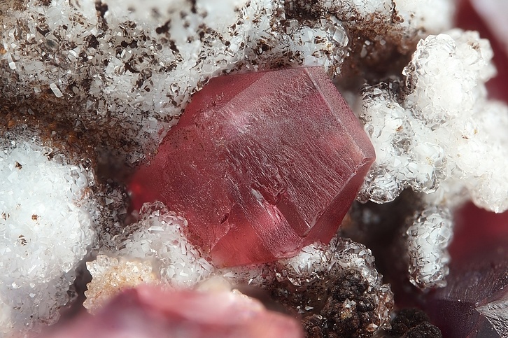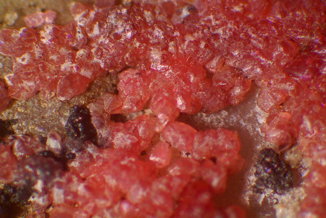 玫瑰砷酸钙石的颜色来源于其内部的钴元素,这种对于昆虫和杂草来说致命的化学元素却催生出了美丽的矿物晶体,嗯…那句歌词怎么唱来着?