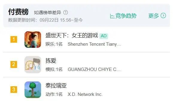 例如,《盛世天下》自上线以来,就在App Store国区付费榜持续霸榜。