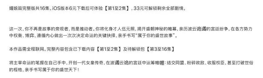 宫廷权谋的题材提供了厚重的戏剧张力,演员阵容吸引了年轻受众,分支选择和高死亡率让玩家真正感受到“能玩”的分量,再加上PC买断与移动章节的双轨商业结构,共同构成了一套完整的解决方案。