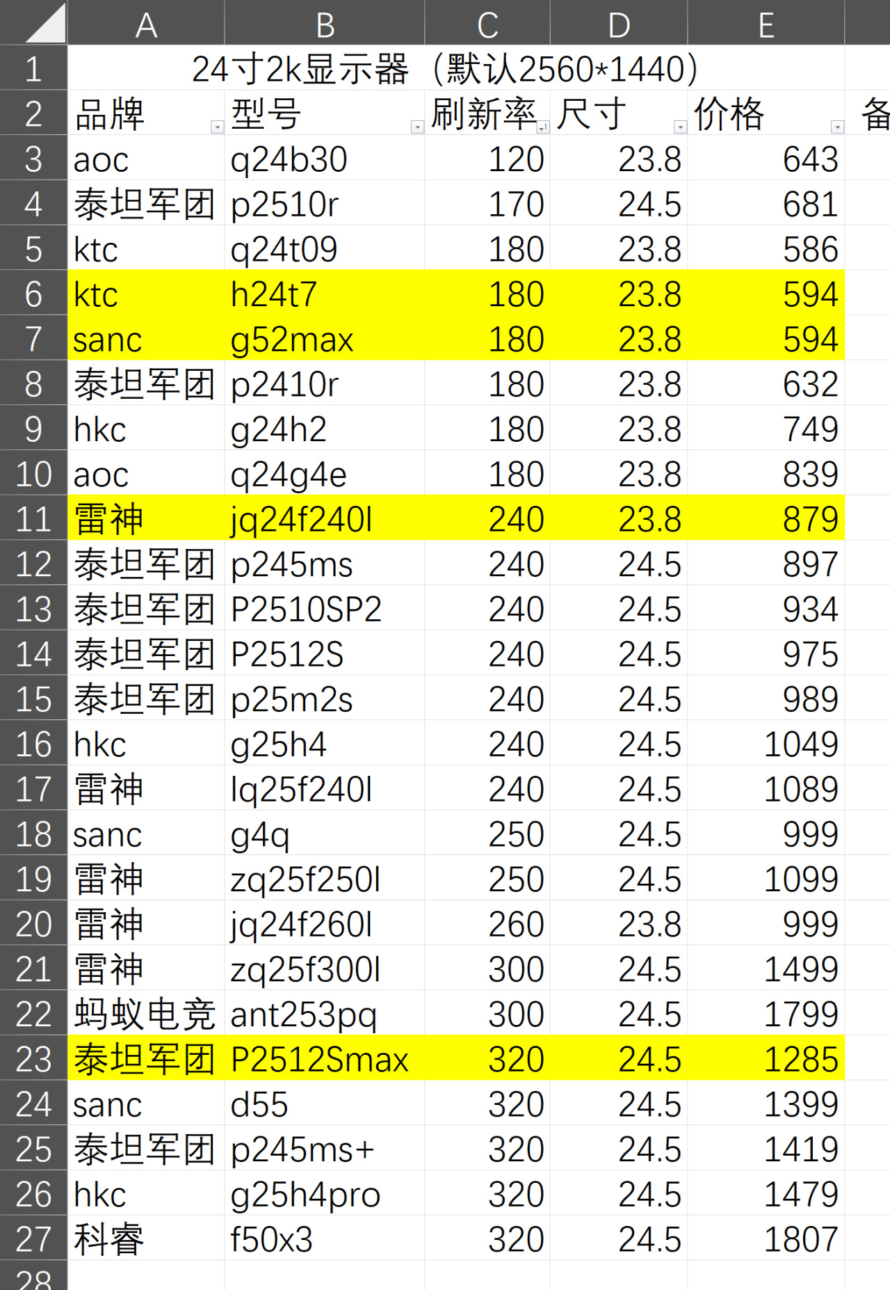 第二版更新,增加1款顯示器,修正泰坦軍團價格(型號真的多),後期計劃發新帖列出詳細一點的參數。