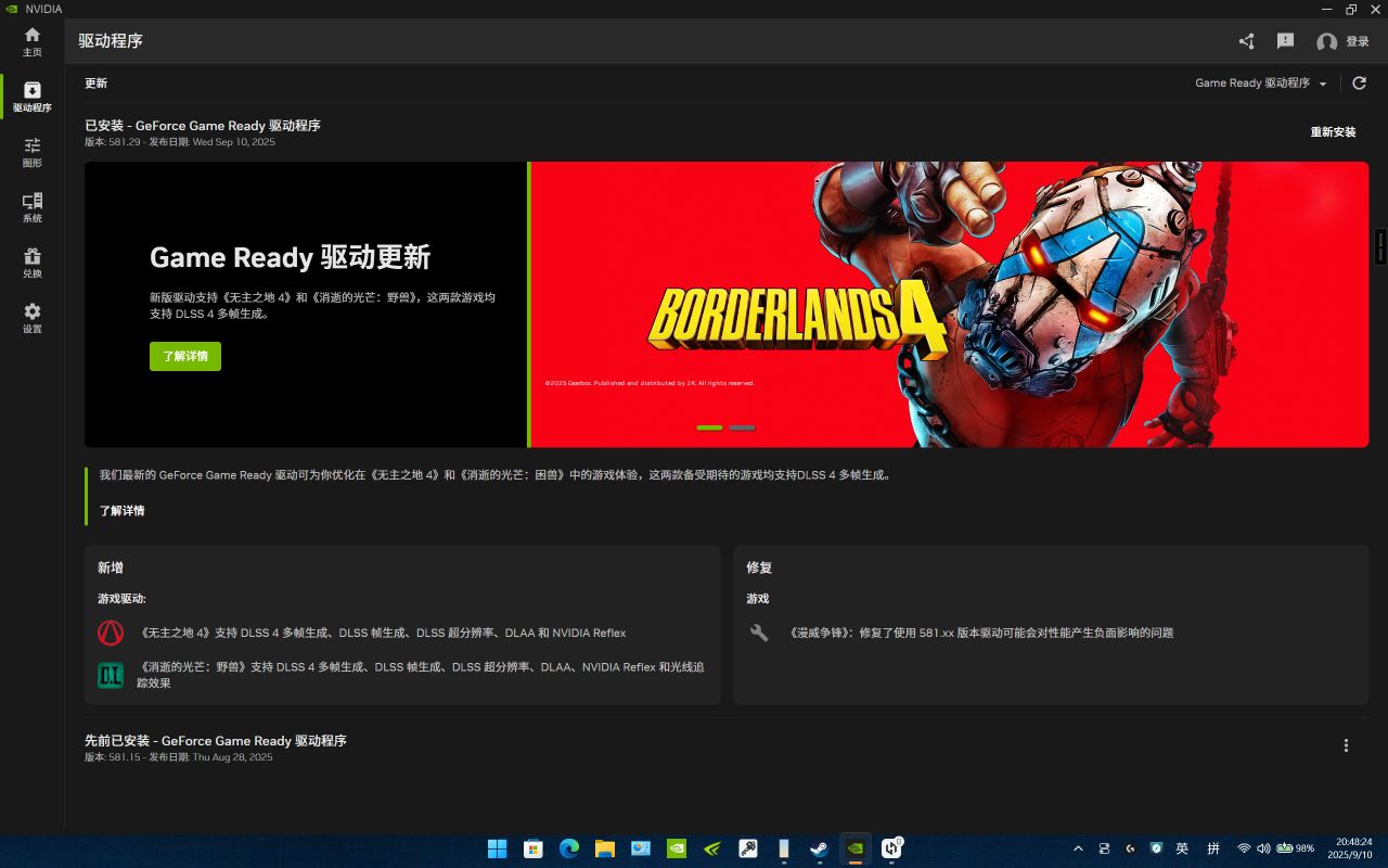 英偉達上一版驅動爲 581.15 WHQL,樓主實測地平線5幀率從80-90下降到70-80,降低約11%,且不是偶然現象,不知是否爲驅動原因,且低延遲模式出現只有“關閉”和“超級”兩個選項的bug,故回退至 581.08 驅動。