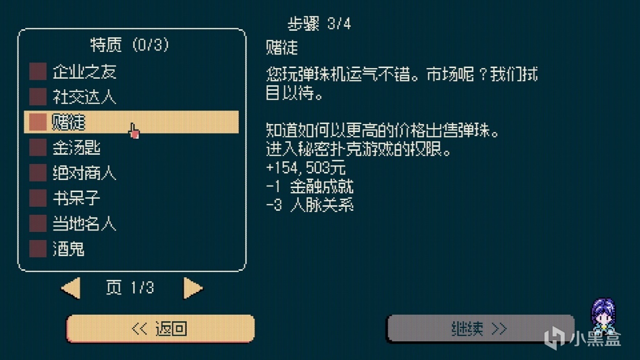 如果你不满足于股市赚钱,不妨重开个新档再选择赌徒特质,这个特质能让你以更高的价格出售弹珠,并解锁扑克小游戏。