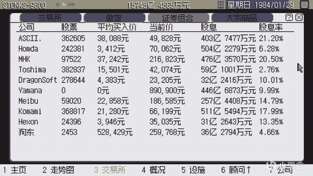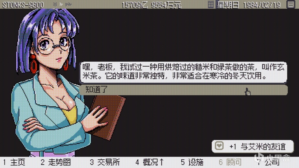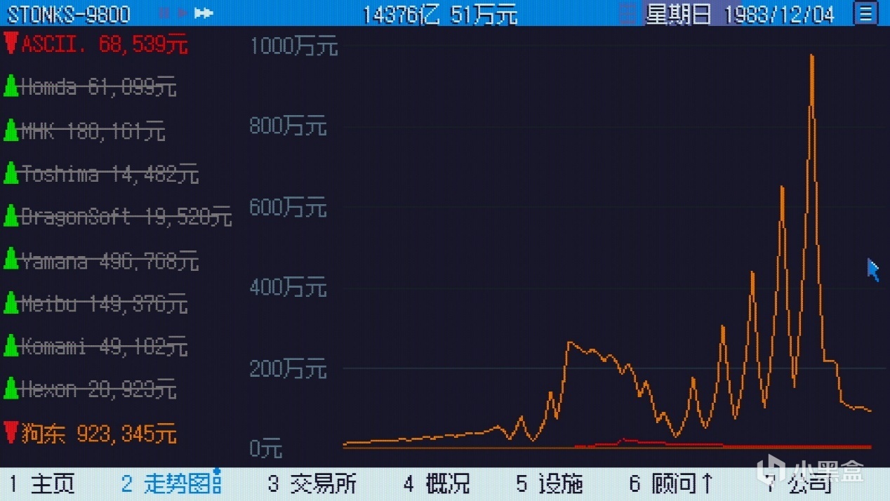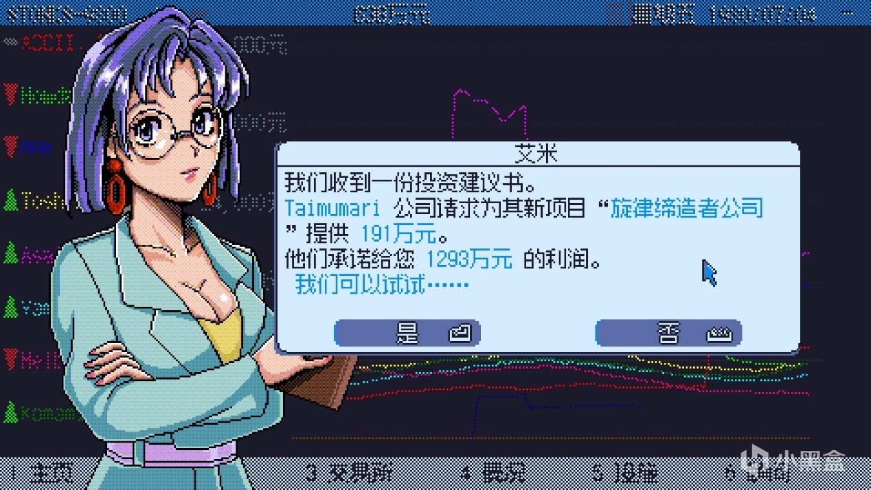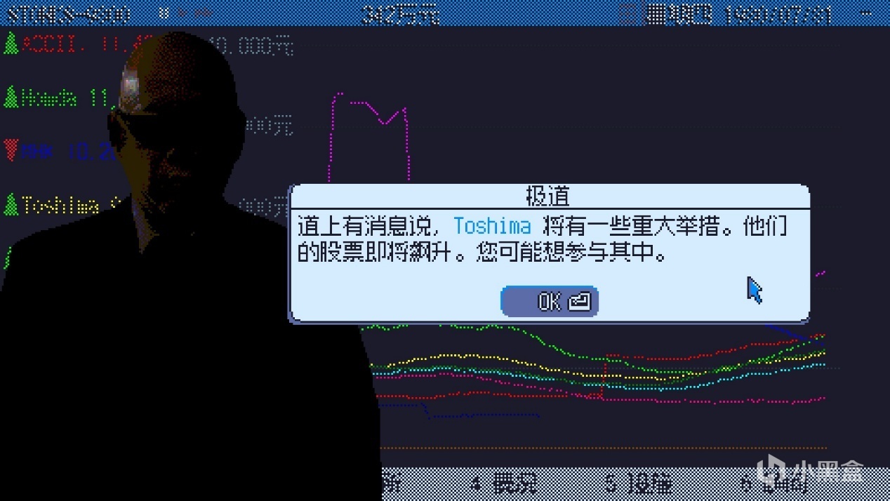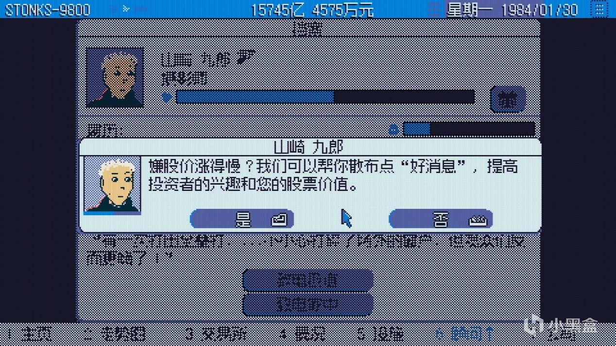 而本作就非常依赖消息面,时不时的会有NPC给我们带来一些内幕消息:某公司接下来股票即将飙升,你只需要无脑买入就行了,在价格上涨后果断抛售部分或全仓,再等待下一次消息透露,非常简单轻松就能实现“低买高卖”。