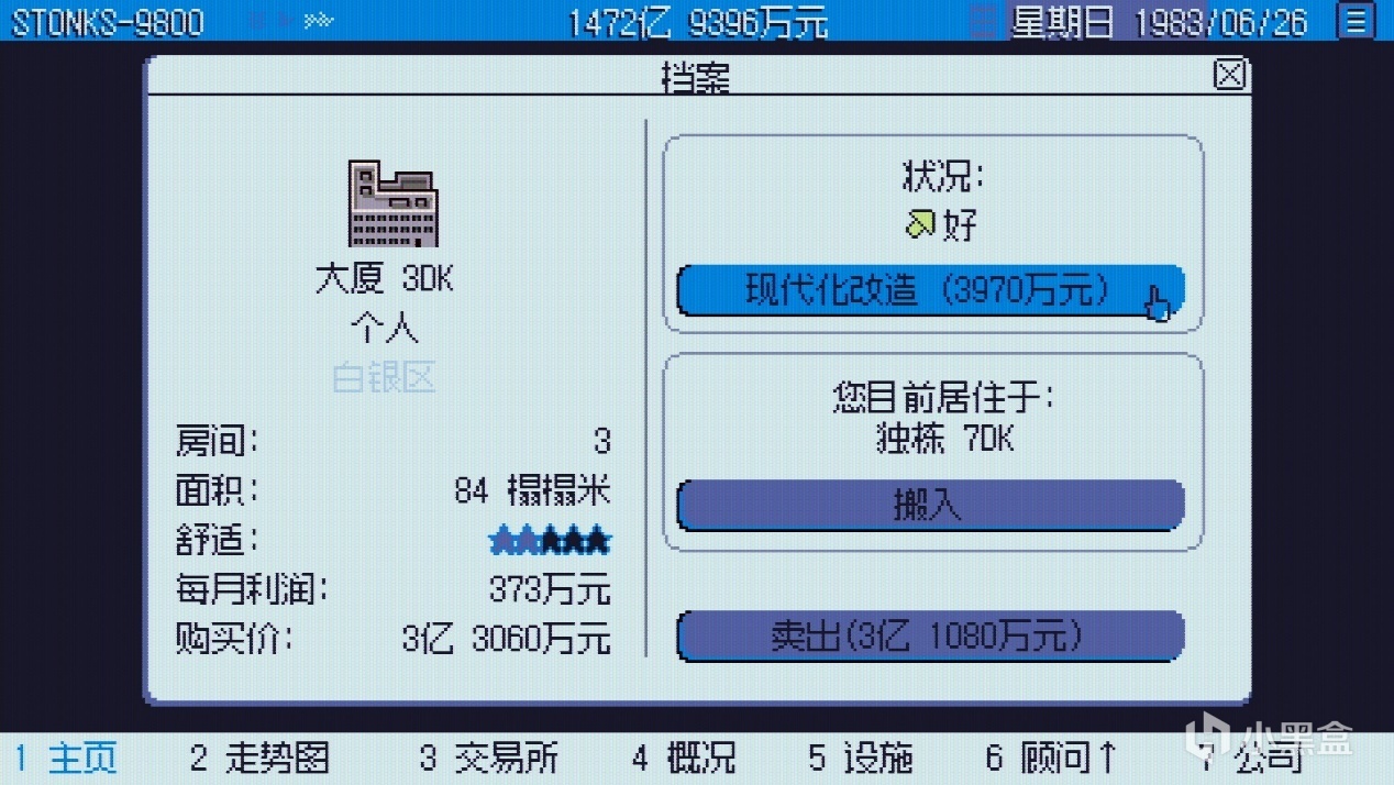 对了,游戏里还能通过改造房子来赚取更多利润,万一在股市里亏光了,大不了变卖房产东山再起。