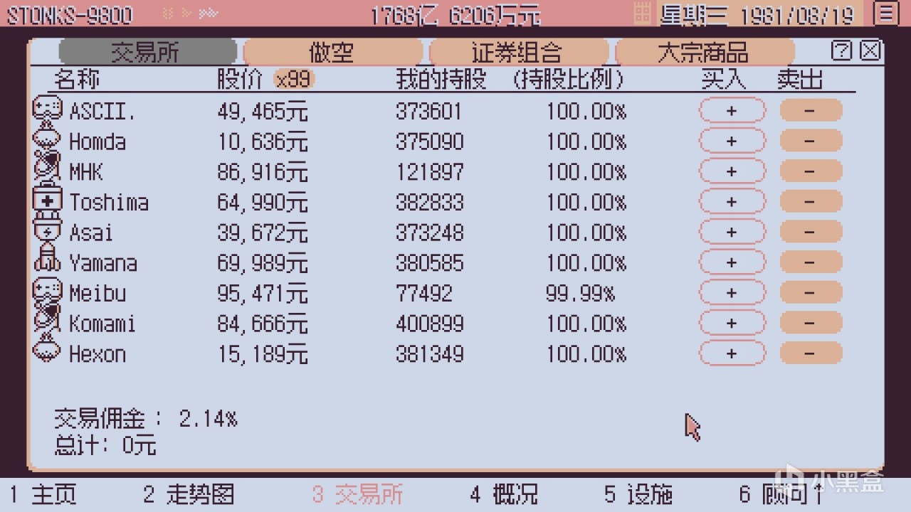 而在游戏中,只要你的本金足够多(几个亿就行),那么这些公司的股份你随随便便都能全部100%。在低价买入大量持股使股价瞬间拉伸,然后再砸盘获利出场。