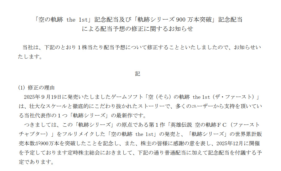 Falcom官方宣佈,公司代表作《軌跡》系列累計銷量已突破900萬份。