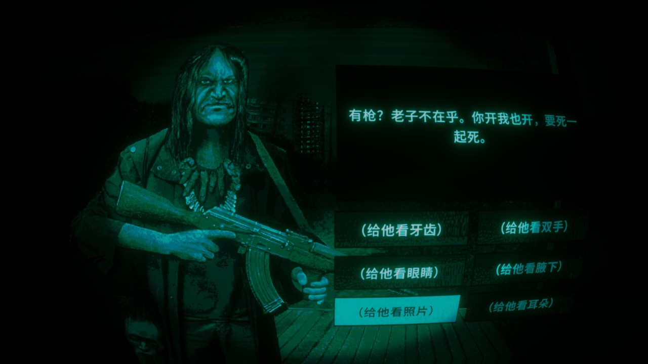 一擊命中爆頭、血液四濺留下一具無頭屍體或者一個垃圾袋(無頭屍證明是僞人;垃圾袋則是人類)。在GTA等遊戲裏,殺NPC毫無負擔。但在這款遊戲,我陷入了接與不接、殺與不殺的道德困境。