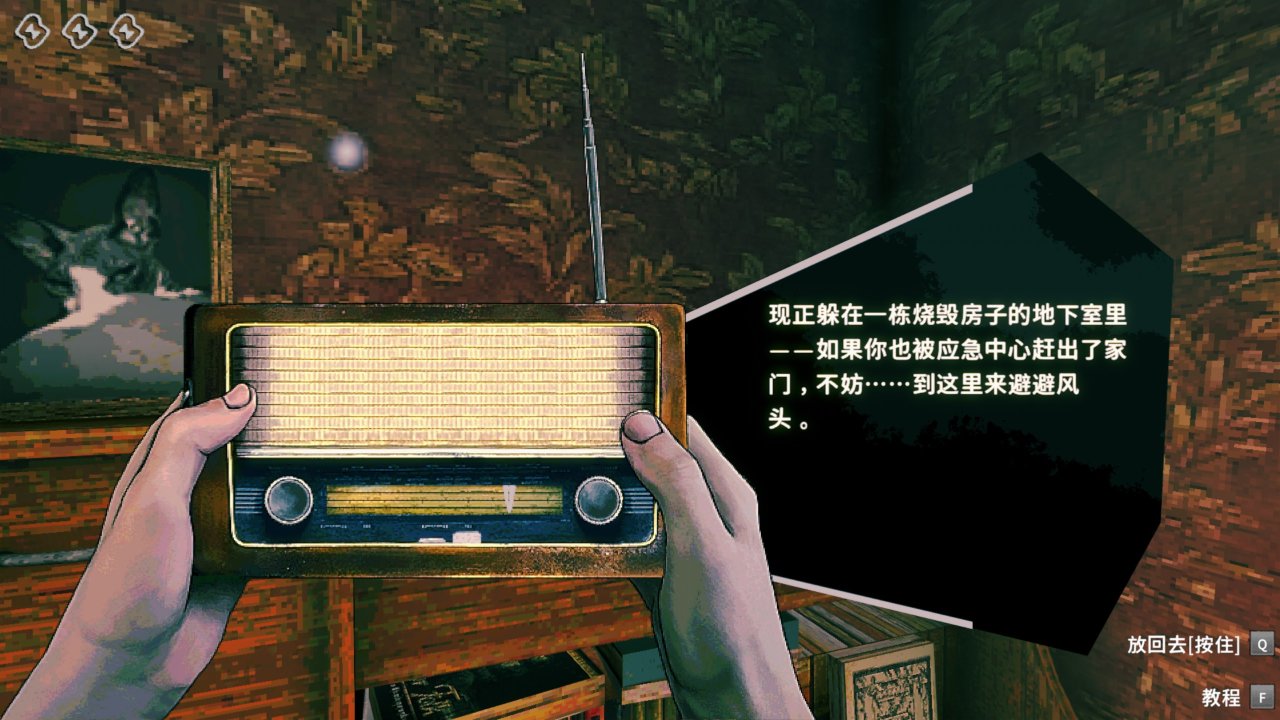 無線電臺可以說是末日必備時尚單品之一。通過無線電廣播,獲取非官方渠道的倖存者留言,逐漸地瞭解某一種“真相”。房子裏有一個地下室,大量的土豆可供生存。還可以挖出一條地道,通往位置的地方。