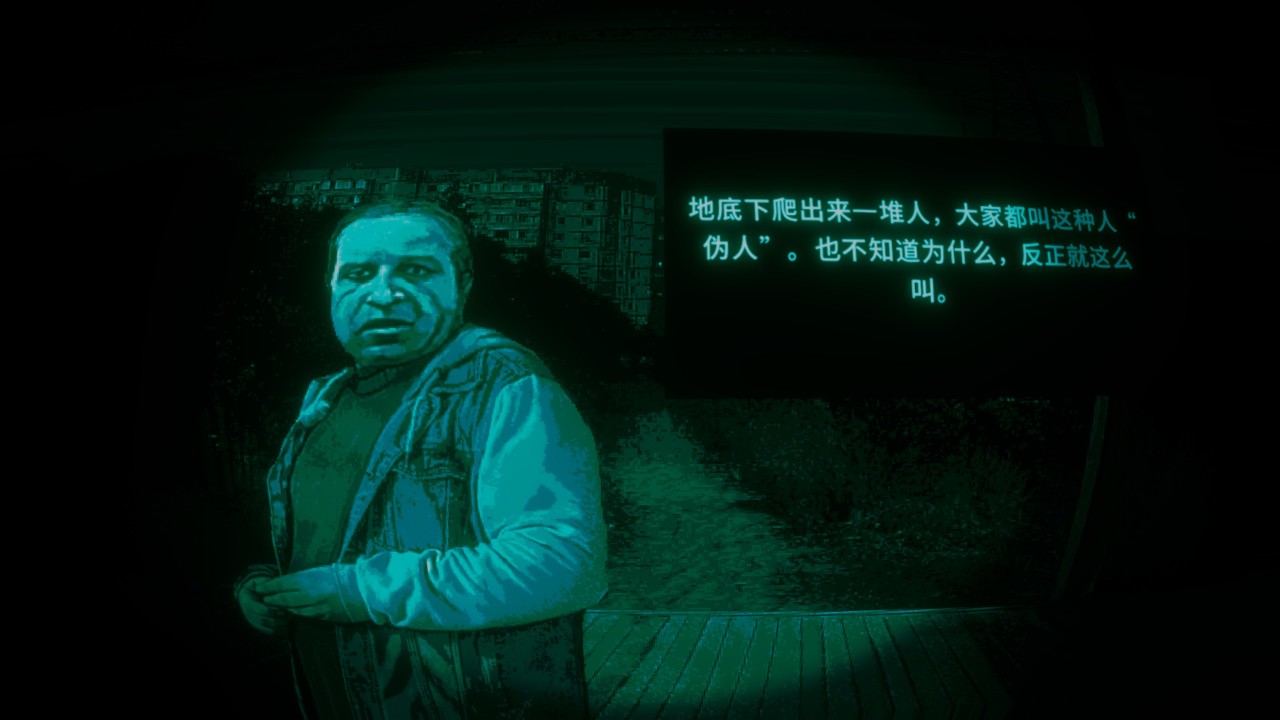 我們也會遇到一名身着火辣的女士,一起在夜晚造小人。Dog也是God便出自這個結局。不用抉擇,我們可以將可疑人員送到應急中心,觸發“應急中心牛馬”結局。我們也可以養蠱,放進所有僞人,與僞人共存。