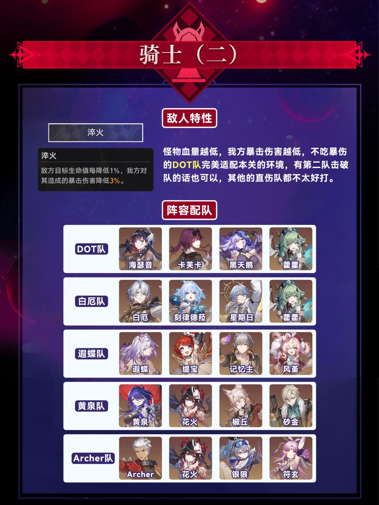 2⃣騎士二:環境利好DOT隊,如果沒有DOT隊就拿出自己練度最高的直傷隊來打