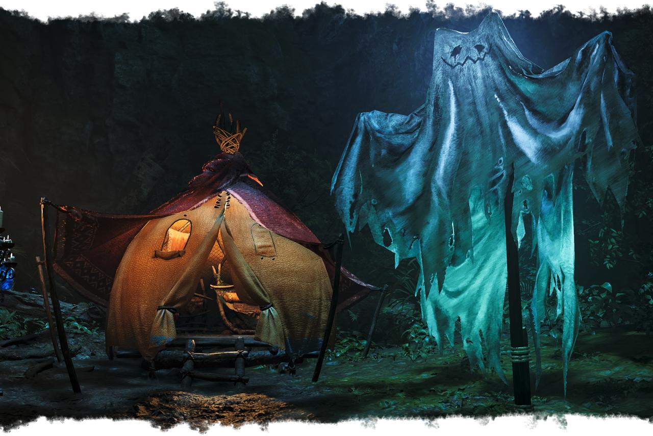 大集会所的装饰会变得诡谲怪异,不仅可以品尝特殊的餐点,还能获得限定装备及肢体动作、简易营地的装备。