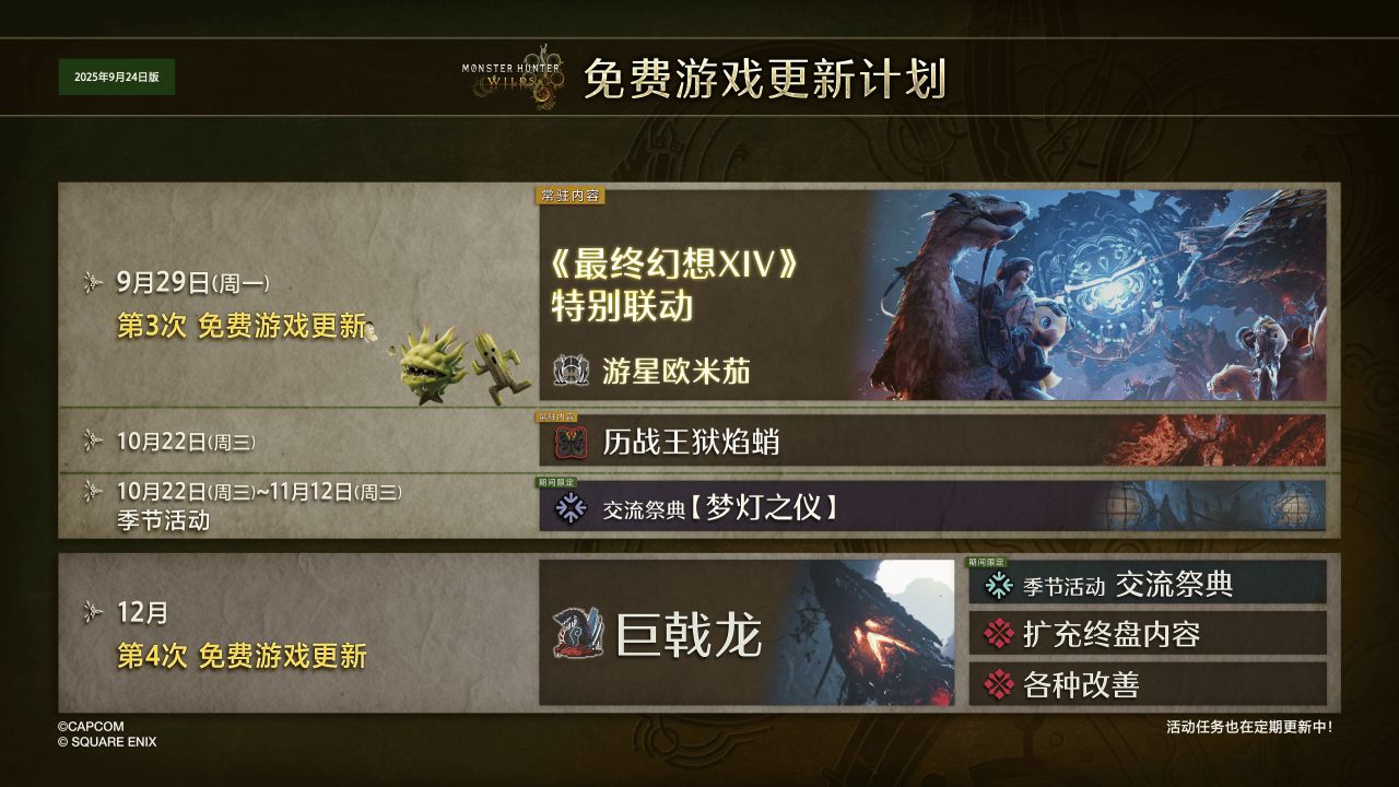 《怪物猎人:荒野》x《最终幻想14》特别联动合作于“第3弹免费游戏更新”发布!玩家将与来自《最终幻想14》舞台“艾欧泽亚”的角色相遇,展开一段别样的剧情。