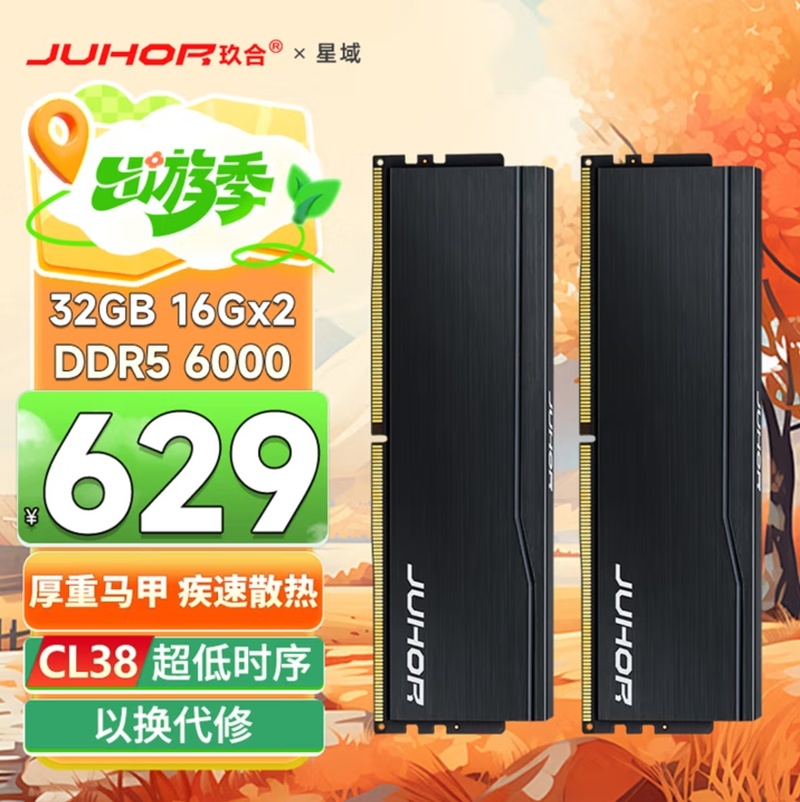 對於圖片處理,需要大容量等場景的用戶來說,JUHOR玖合還有5600MHz 64GB(32Gx2)大容量套裝可選,一次性到位。價格相對於臺式機8000MHz的容量翻了一倍,性價比相對可以。
