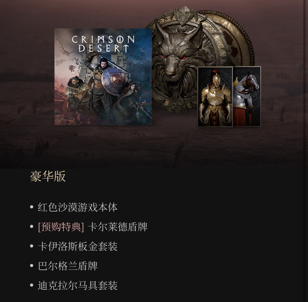 《紅色沙漠》現已開啓預購,標準版售價¥268,豪華版售價¥328,預計 2026 年 3 月 20 日發售。