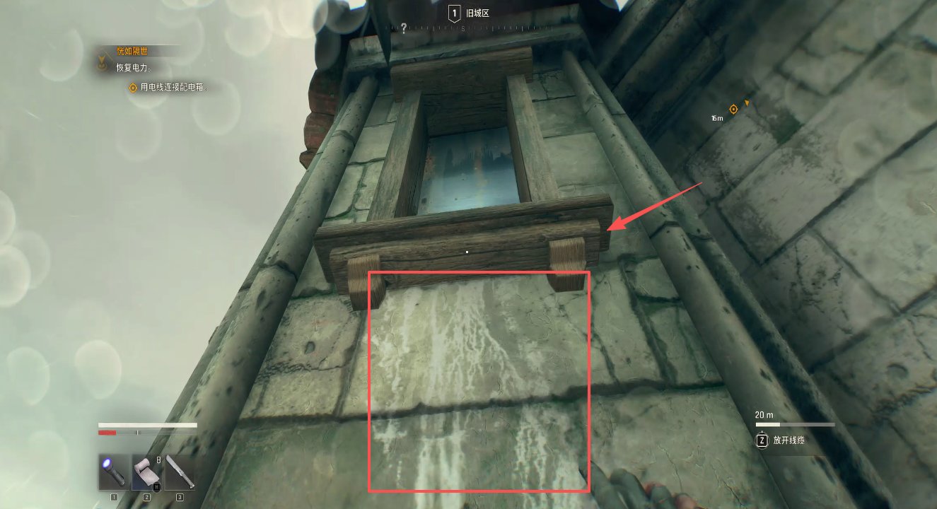 直到玩到中期,跑圖越來越熟練,我才注意到,原來有些攀爬點是藏了小提示的。比如這座塔樓,會用白色油漆在攀爬位置做標記,幫玩家快速定位。寶子們玩的時候可得多留心,別像我前期那樣對着建築瞎找攀爬點,浪費時間還影響心情: