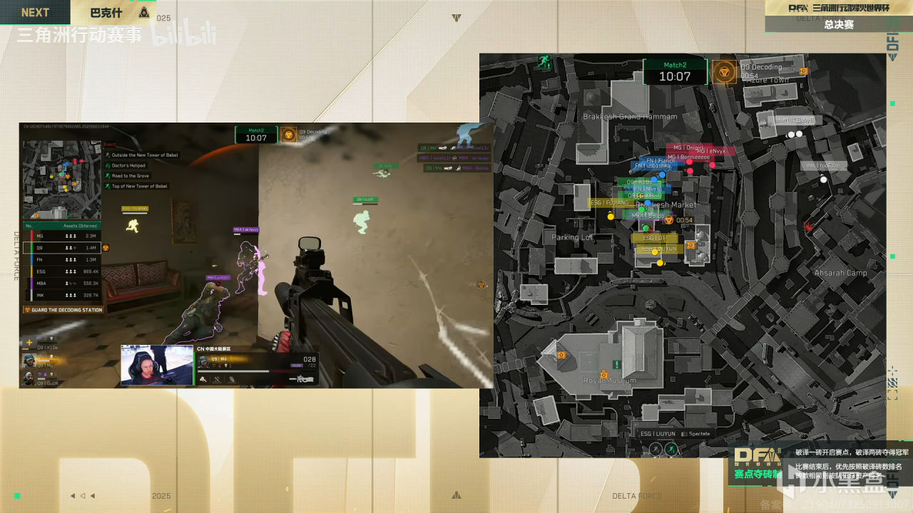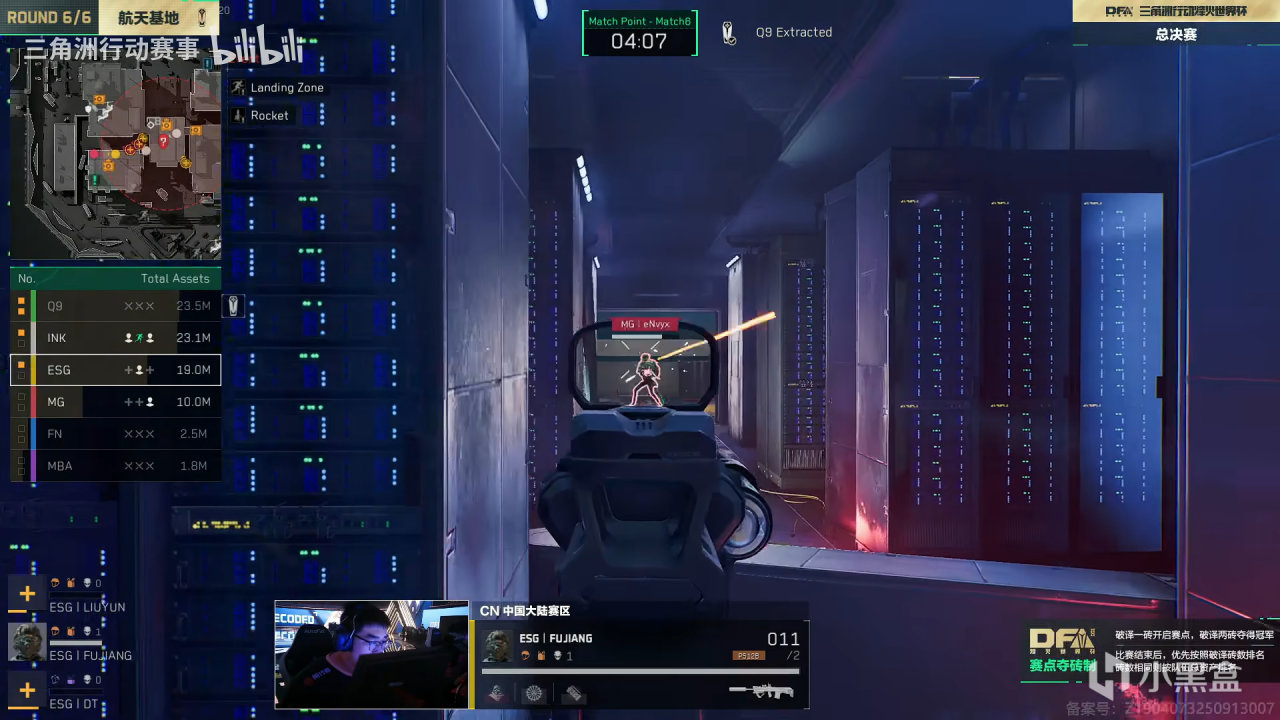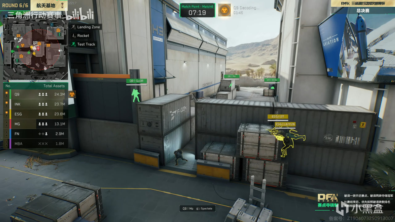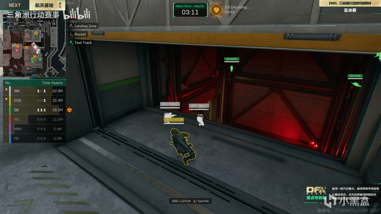 就在ESG拿砖的瞬间,被Q9.Mo抓住机会爆头。随后Q9抓住战机,打掉ESG两名干员,又将欲来抢砖的MG全员淘汰。