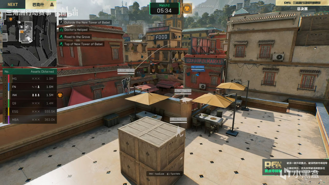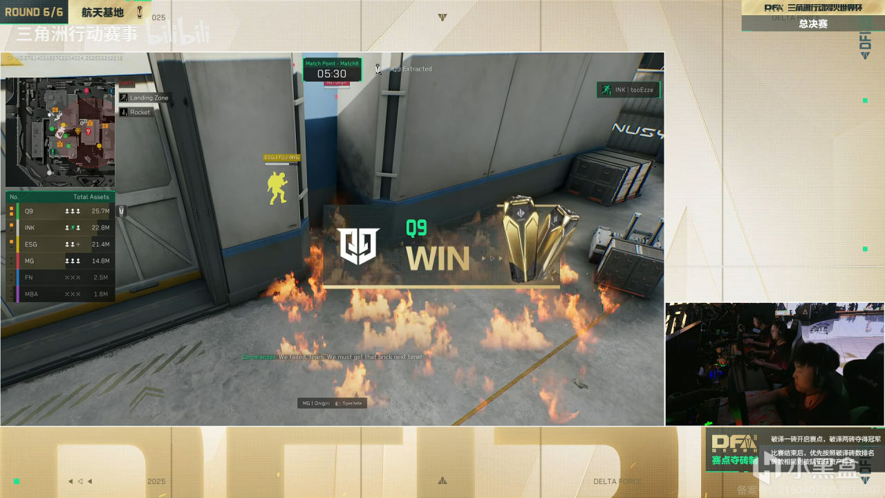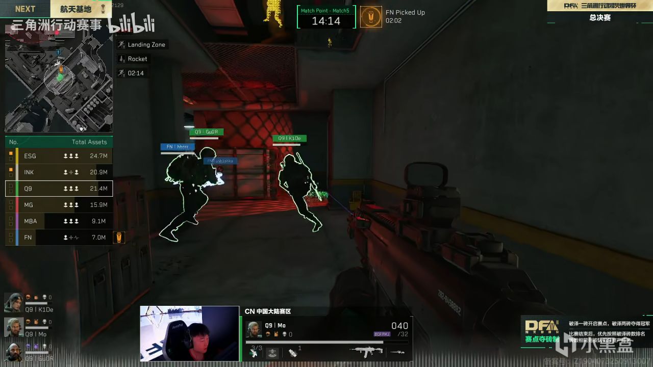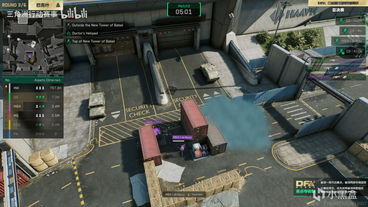 撤离点Q9和MBA激战,最终Q9全员撤离,而MBA只成功撤离一员,剩余两人被INK捡漏淘汰。