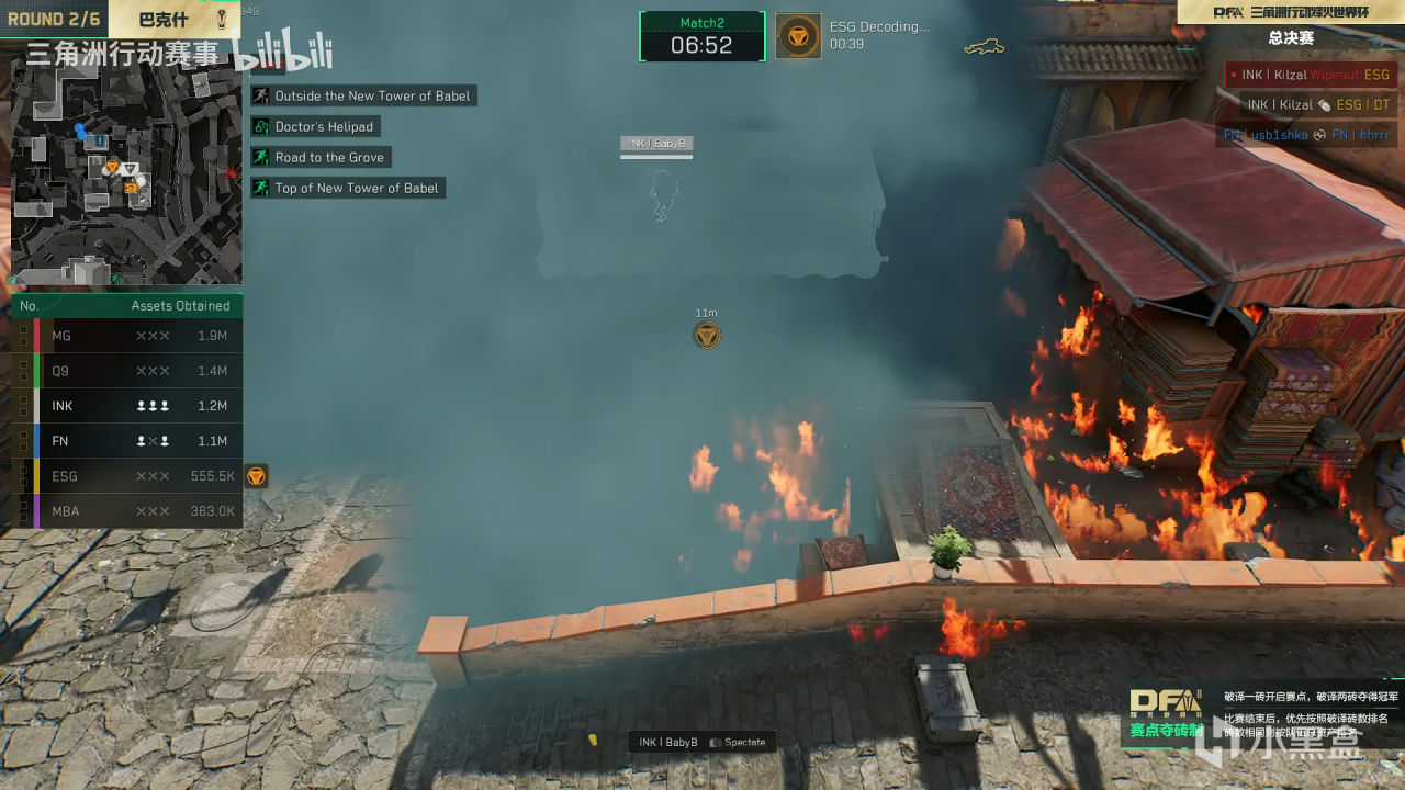 INK.Kilzal突然把ESG.DT击倒,导致ESG失去进场时机,两支队伍在外面打了起来。