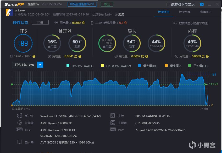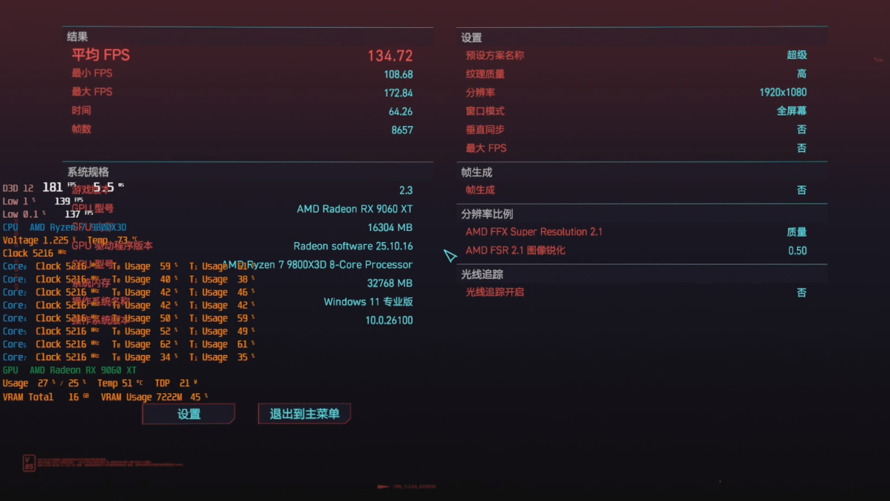 1080p推荐配置:AMD R7-9800X3D + RX9060XT 16G