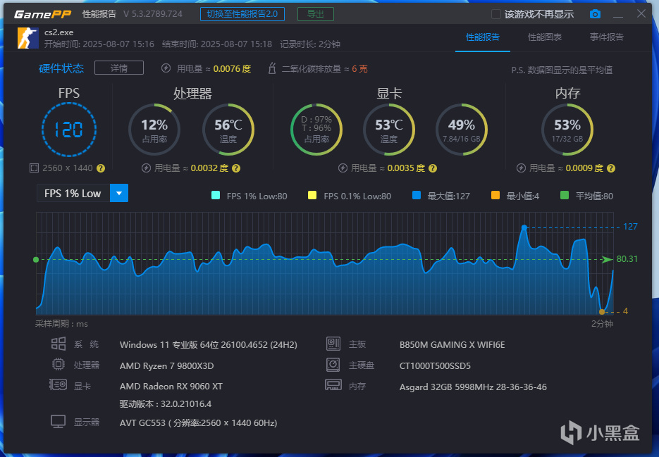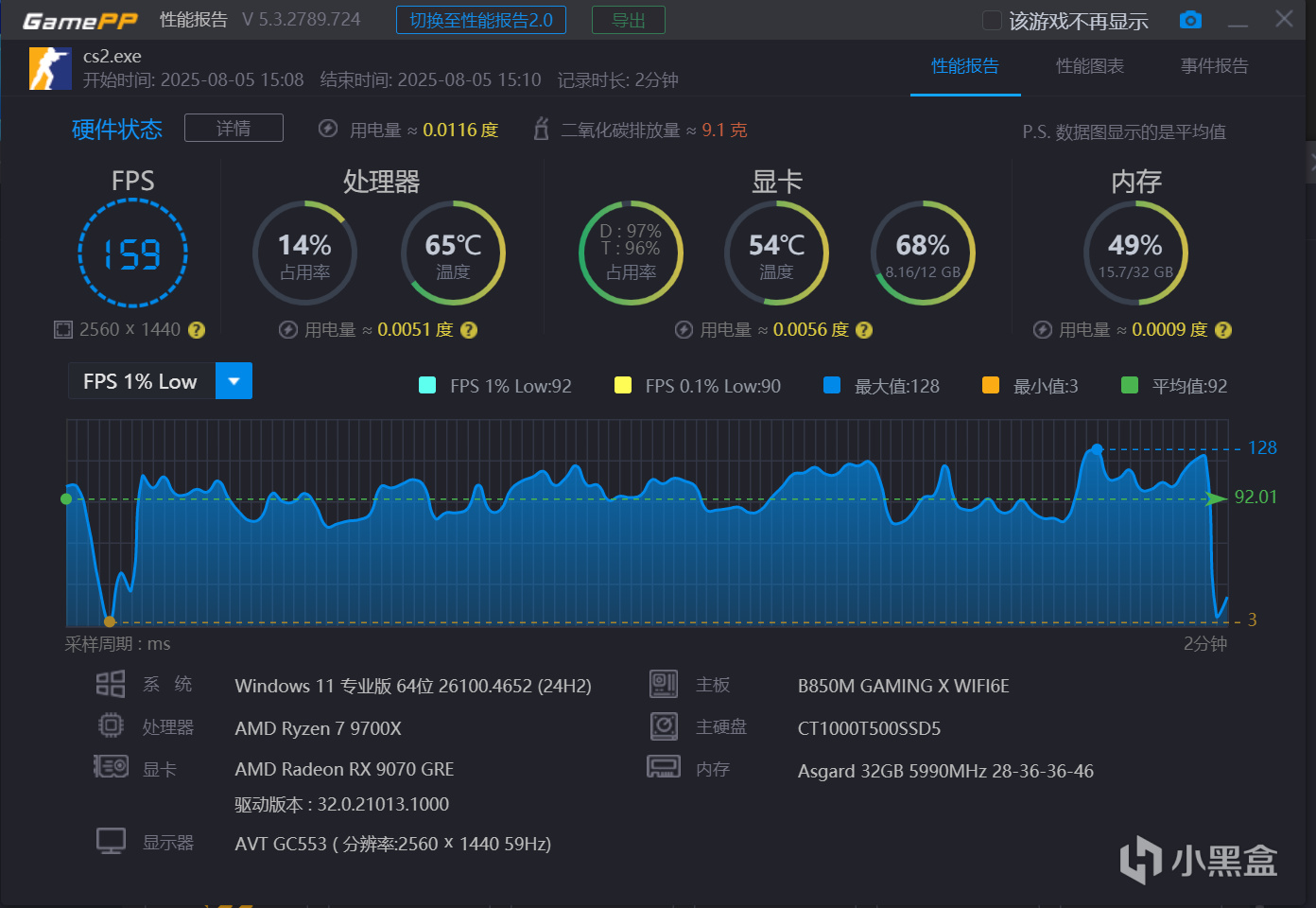 2K推荐配置:AMD R7-9700X + RX9070GRE 12G