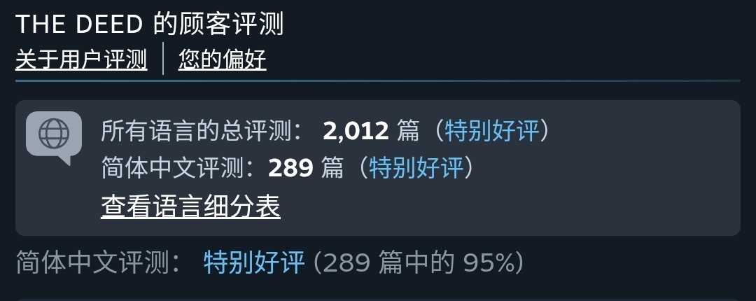 《The Deed》,支持簡體中文,特別好評。