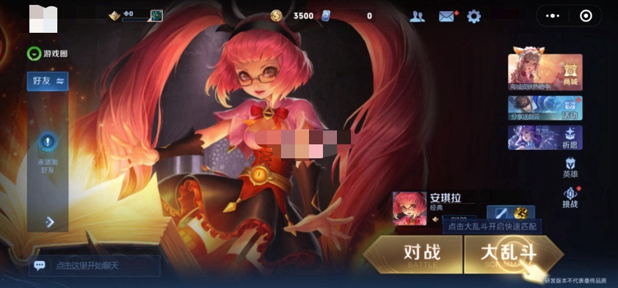 游戏开局只有3V3对战和梦境大乱斗两种模式。