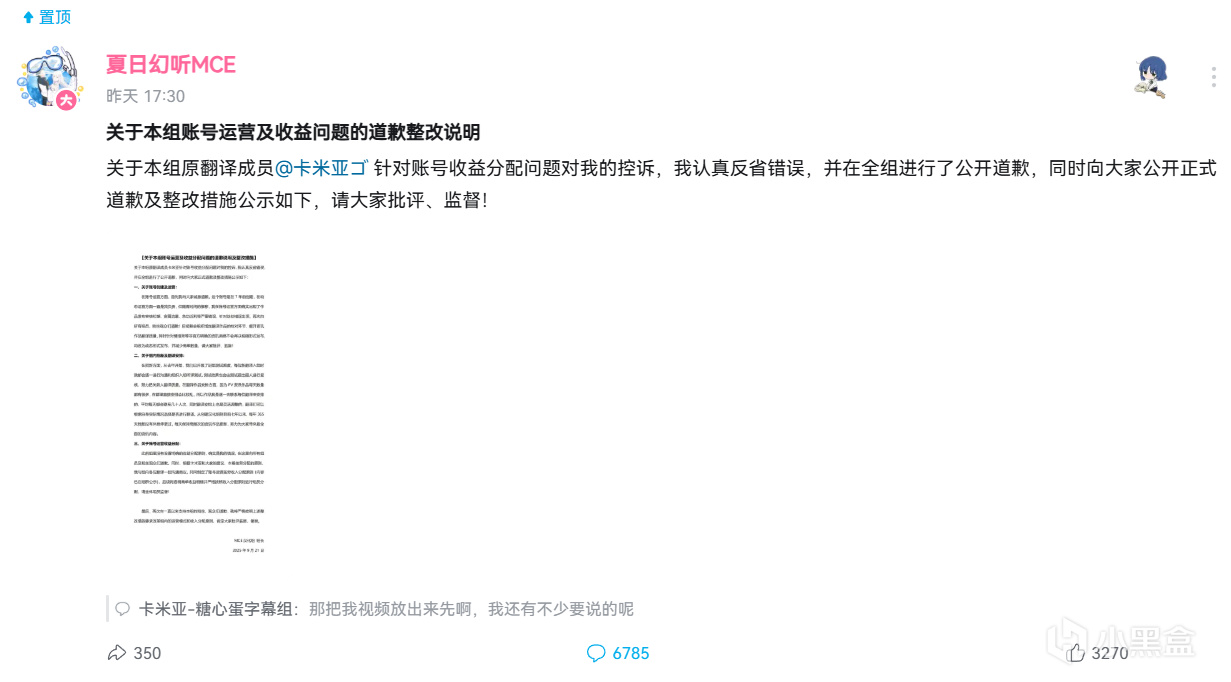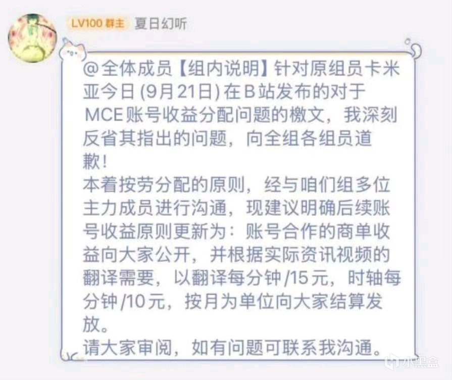 最後,夏日幻聽迫於壓力,終於在MCE漢化組賬號上發佈了道歉聲明,並就賬號運營、翻譯失誤和收益分配問題,給出了相應的整改方案。