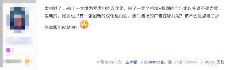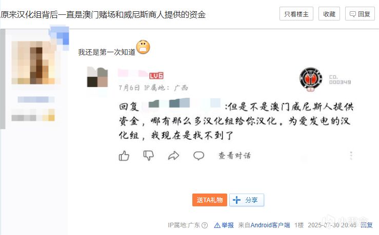 前段時間我刷到一個比較搞笑的帖子——它的大概內容是,樓主看到一條吐槽“漢化組人心不古,全靠澳門威尼斯人贊助”的評論後,截圖發到網上,並詢問網友其真實性。