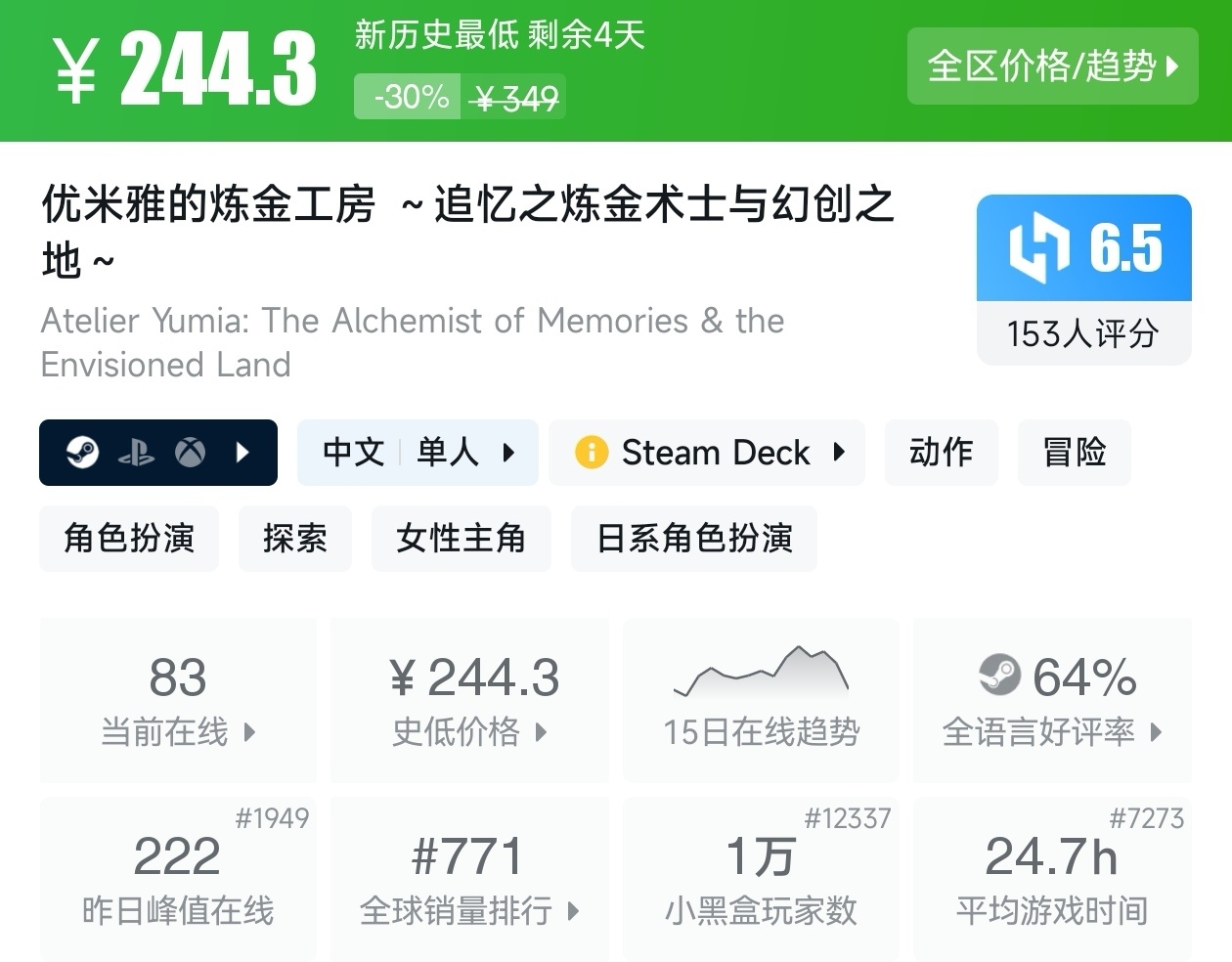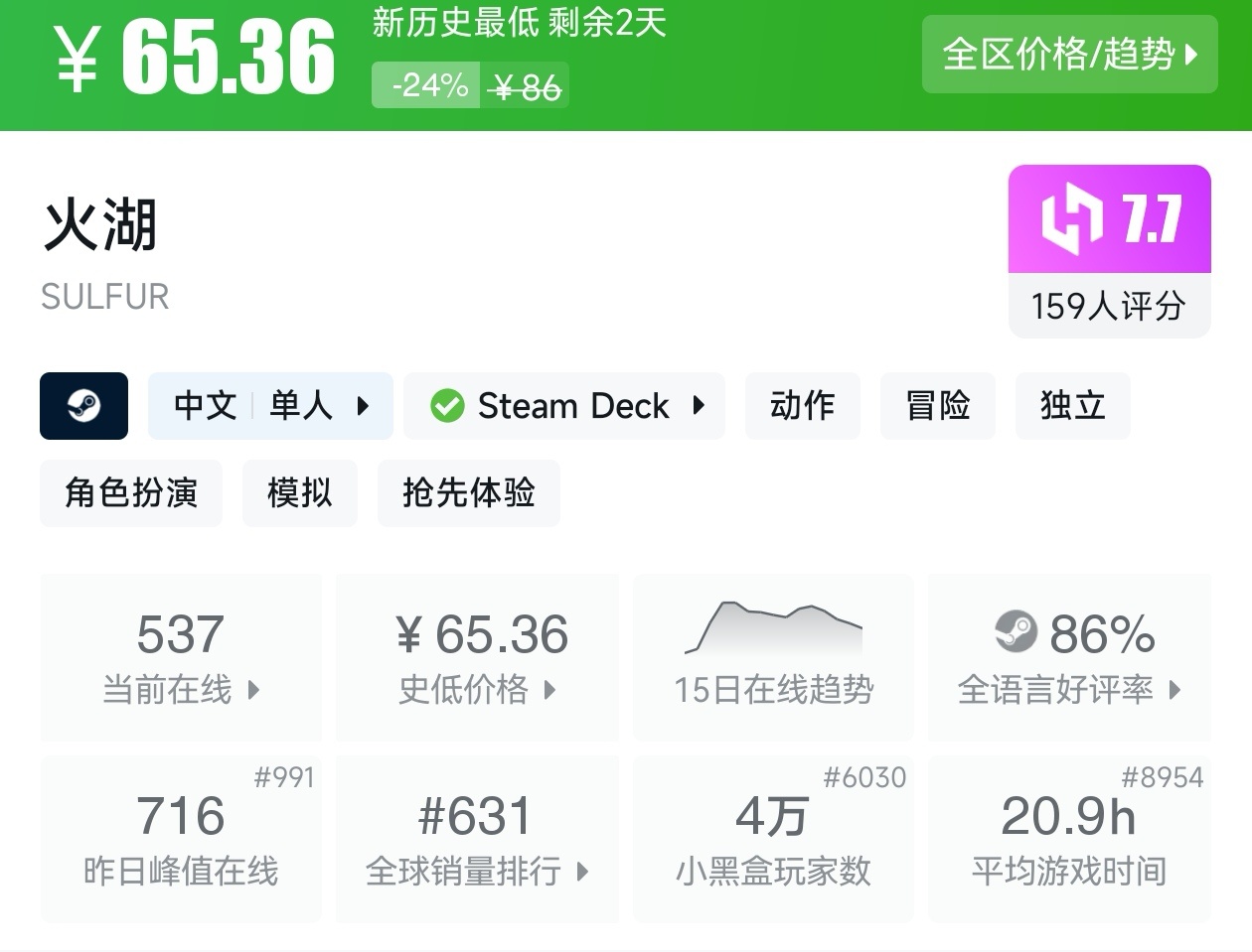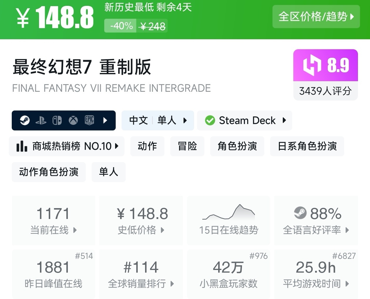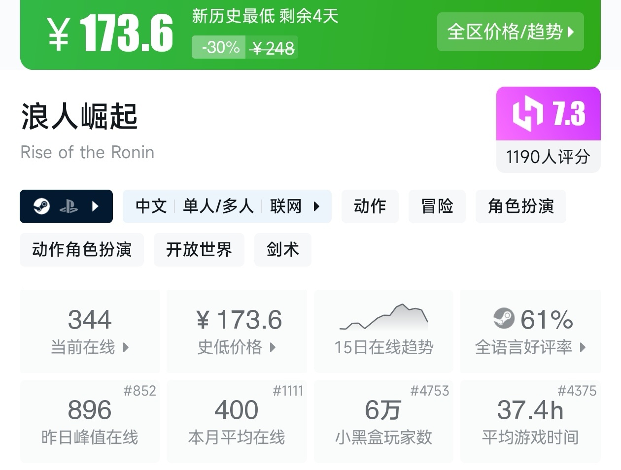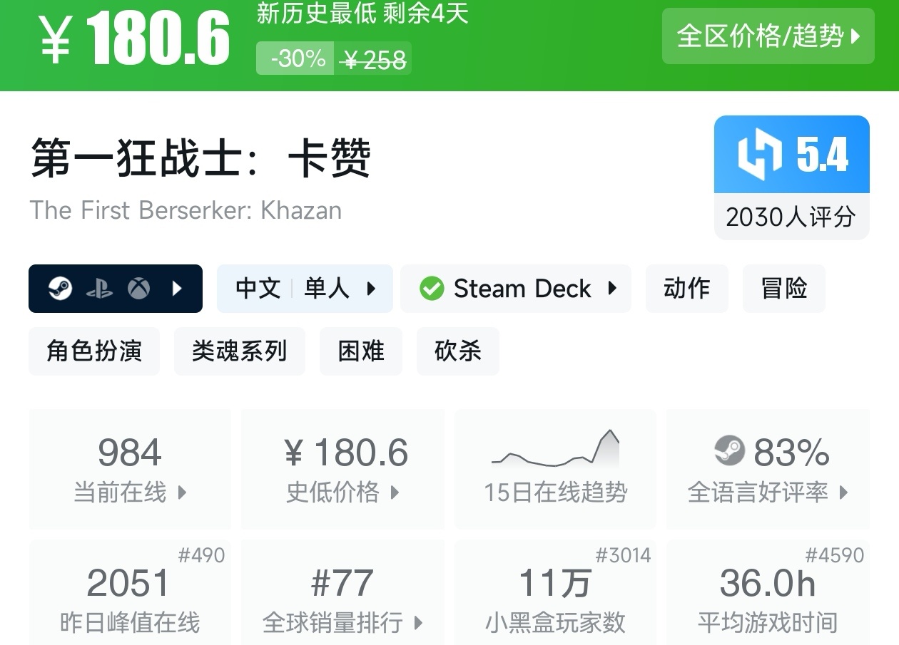 游戏首次打折。