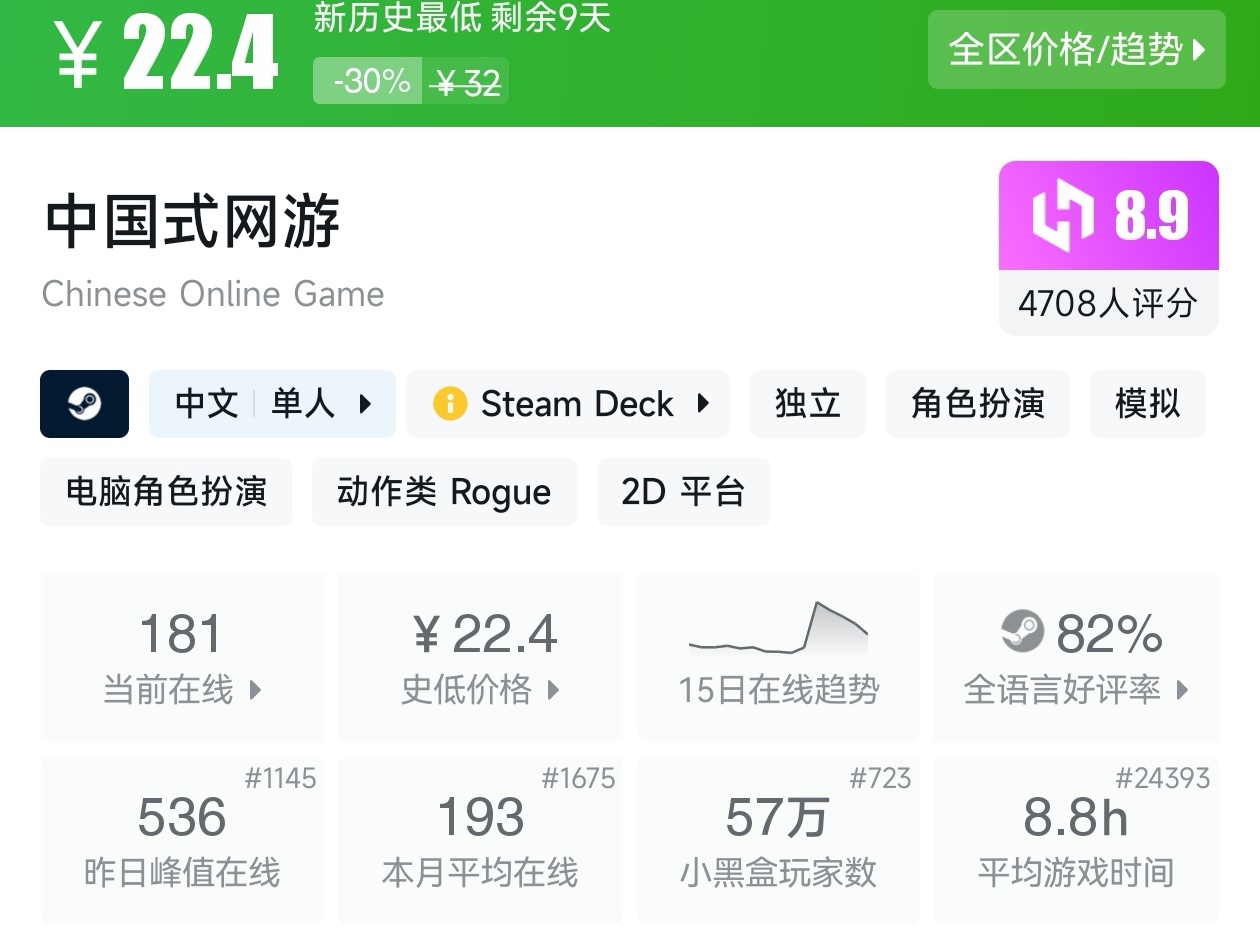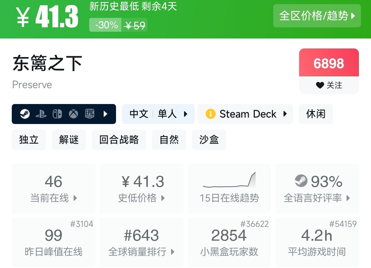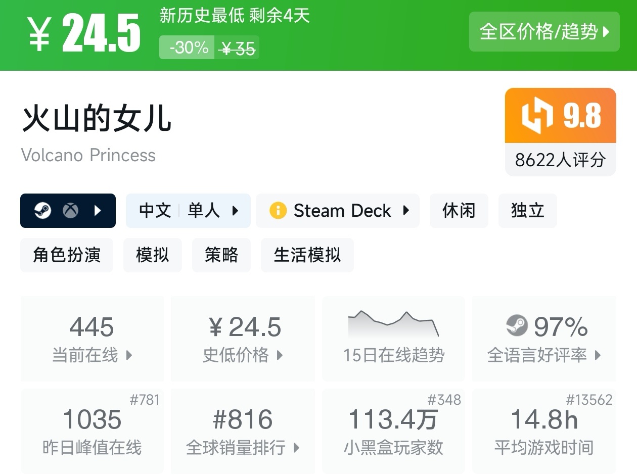 大家好,没错,又是我,你们的老朋友亦然,转眼,距离盒友们期待的秋促已经不足一周了,但现在已经有游戏在抢跑了,而且很多,甚至那些我们熟悉的厂商和游戏都已经抢跑了,其中还有很多新史低游戏,其实新史低游戏买起来最有安全感,因为在很长一段时间都不会更低,我将为各位进行一个汇总,希望我的汇总,能够帮助各位盒友挑选心仪的游戏。