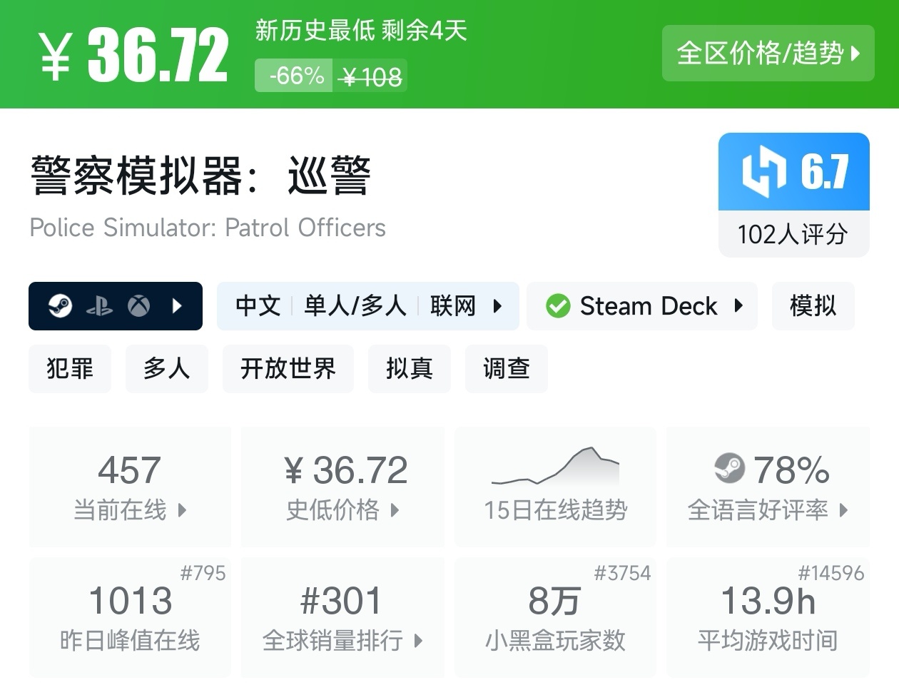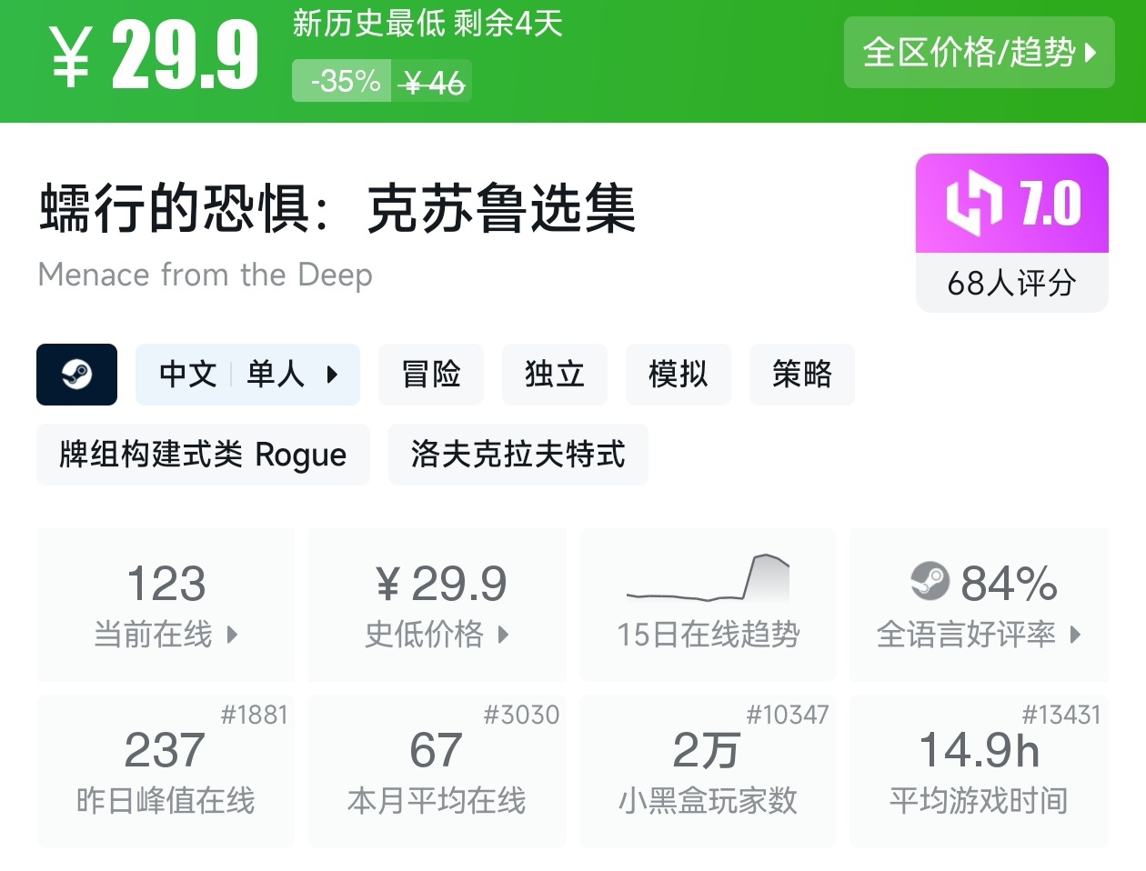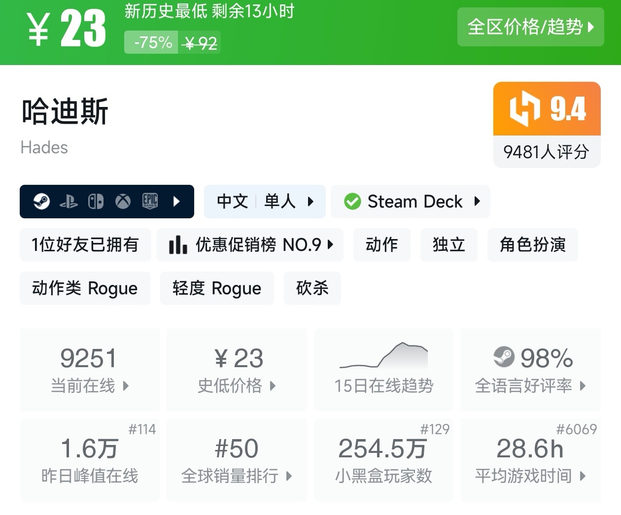大家好,没错,又是我,你们的老朋友亦然,转眼,距离盒友们期待的秋促已经不足一周了,但现在已经有游戏在抢跑了,而且很多,甚至那些我们熟悉的厂商和游戏都已经抢跑了,其中还有很多新史低游戏,其实新史低游戏买起来最有安全感,因为在很长一段时间都不会更低,我将为各位进行一个汇总,希望我的汇总,能够帮助各位盒友挑选心仪的游戏。