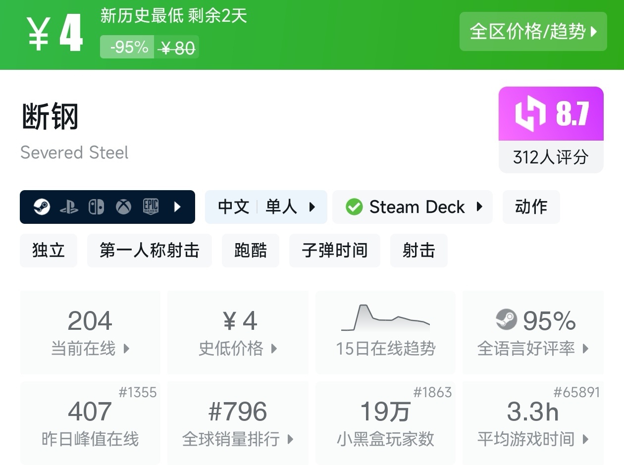 以上就是这期的折扣汇总,几乎涵盖了近期所有新史低游戏,这些足足用了我一个小时。