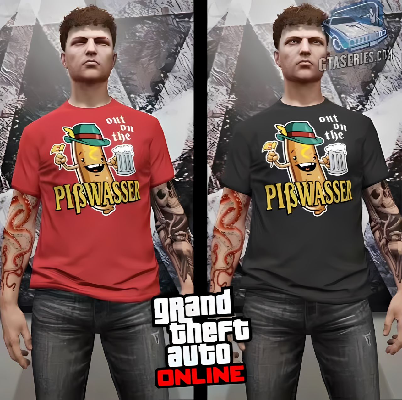 高山帽子、尿湯啤金色短褲、黑色/紅色暢飲尿湯啤T恤、埃伯哈德泰坦250D尿湯啤塗裝、高山套裝、尿湯啤節慶啤酒帽(該帽子僅限次世代玩家)