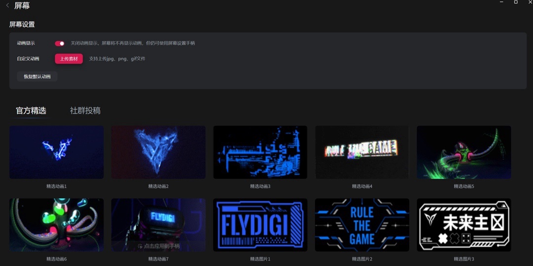 可以在手柄端自主完成设备调整,如模式切换等一系列操作,不用打开软件,更加省心。当然这块高刷屏幕真正的玩法是放一些动图来提升“战斗力”,自定义想放什么放什么
