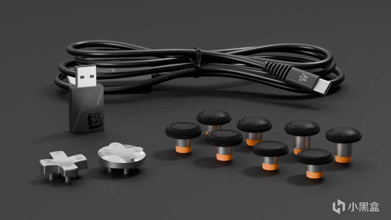 除了上述基础物品之外,礼盒还附赠了超多好物:4个「绝世玩家」摇杆帽、亚克力挂牌、手柄收纳包,8个「绝世玩家」摇杆、3个不同类型十字键、2套定制面盖,可根据游戏和个人习惯自由更换,让手柄更贴合使用需求。