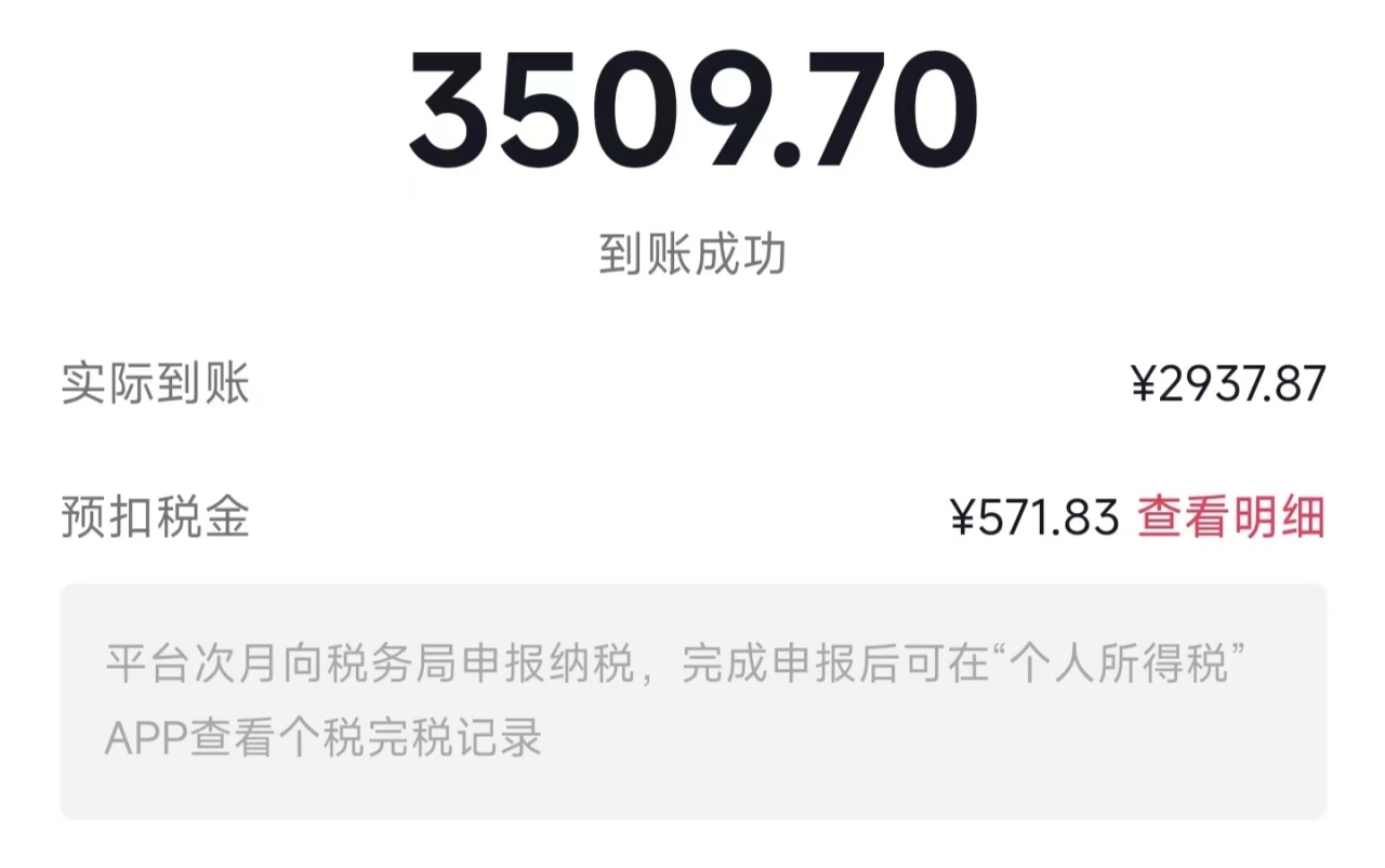 最后抖音这边小小吐槽一下,这税扣的也太多了吧!!!