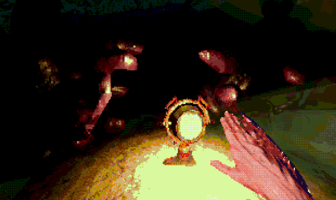 第二個是把掌心打開一個口子變成“真視之眼”,可以看破一些幻象找到隱藏的物品,而第三個是直接讓手冒火,可以照亮場景並且點燃一些物品。