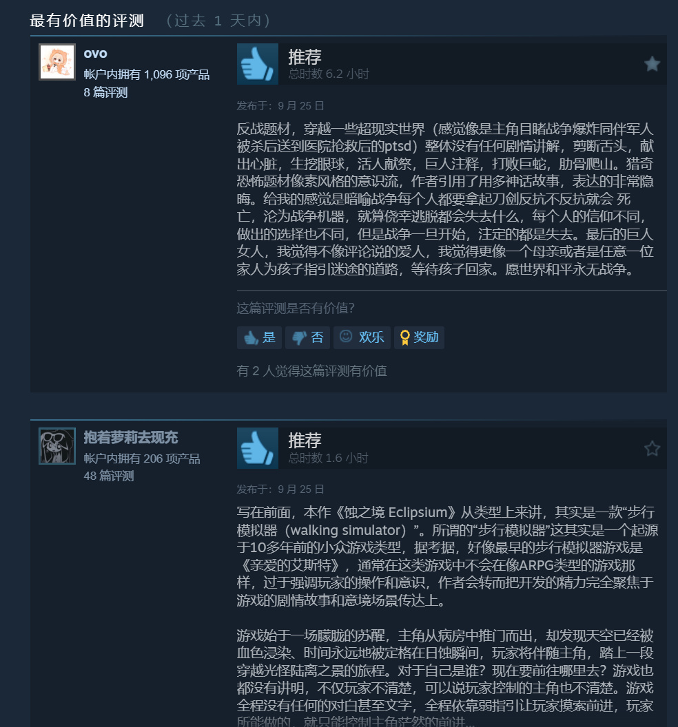 可惜《蝕之境》就是一款小衆的遊戲,雖然心理恐怖+步行模擬器的題材有很多人喜歡,但是沒有引導+獨特畫風+劇情晦澀的設計,這就已經勸退了很多玩家。