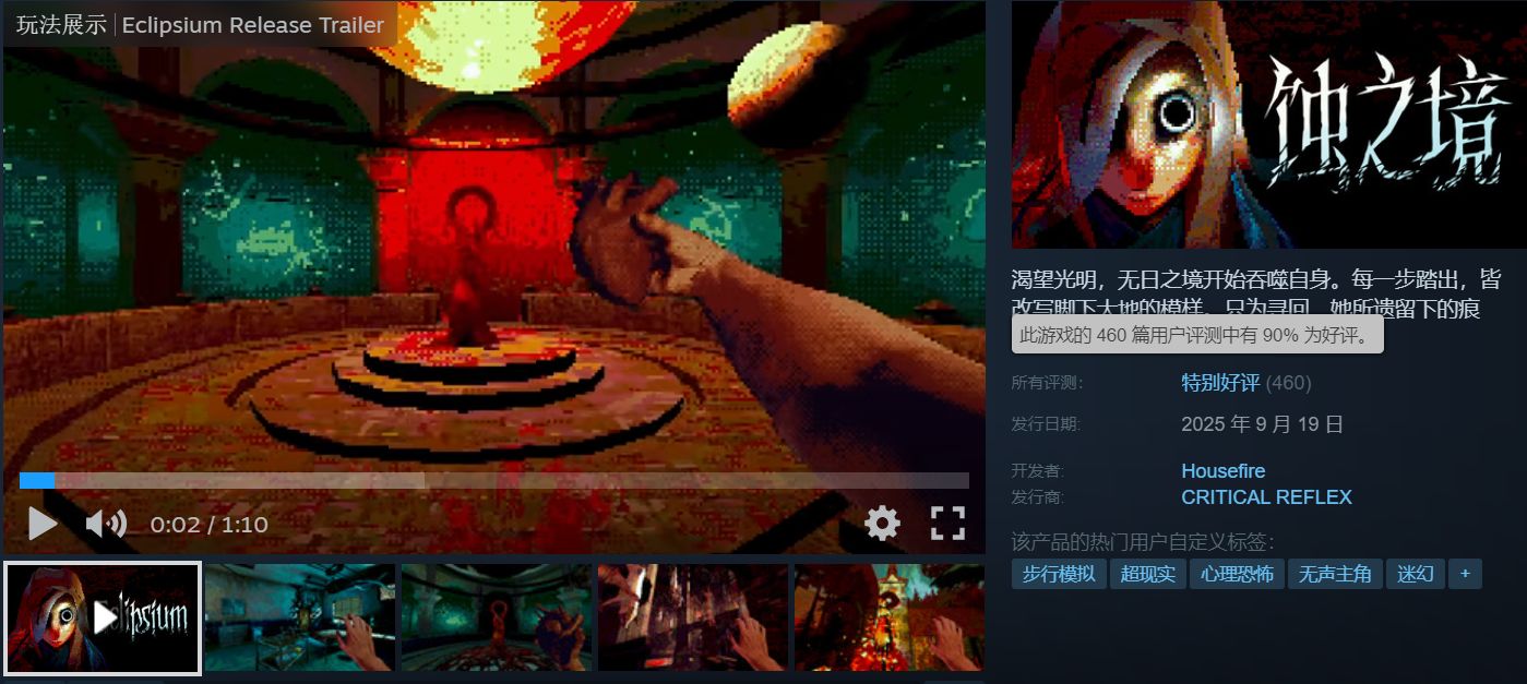 而就在最近,又一款90%好評率的心理恐怖新作登錄了steam,就是這款有着大眼萌妹封面的《蝕之境》。