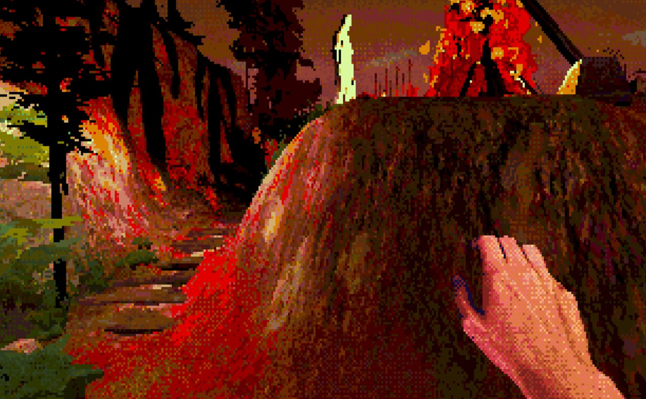 隨着遊戲進展,我們的手可以獲得三種能力,第一個是手裏插進一把刀變成手刀,可以砍倒一些擋路的東西。我個人感覺手刀是真挺帥的。