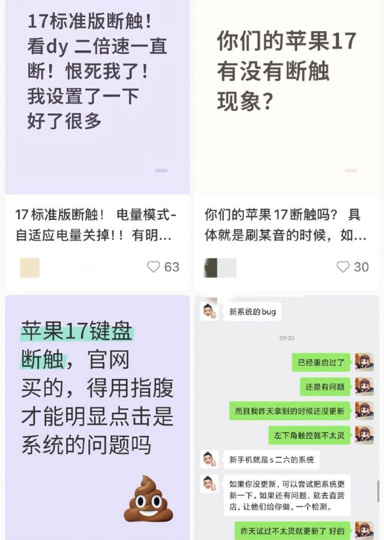 iPhone 17系列發售初期即面臨多種品控爭議,如機身劃痕、綠屏等。此次斷觸問題進一步影響標準版口碑,但蘋果可能通過後續系統更新進行修復(去年iPhone 16斷觸問題即通過更新解決)。