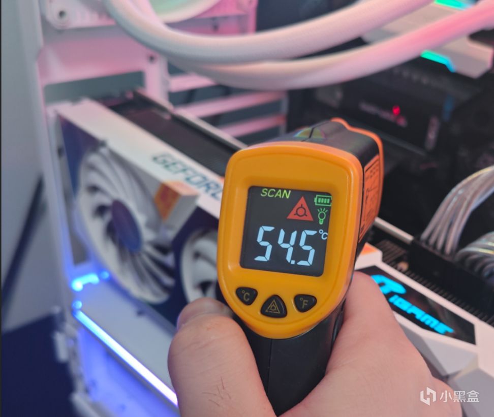 全盤寫入時,表面最高溫度在54.5度左右。