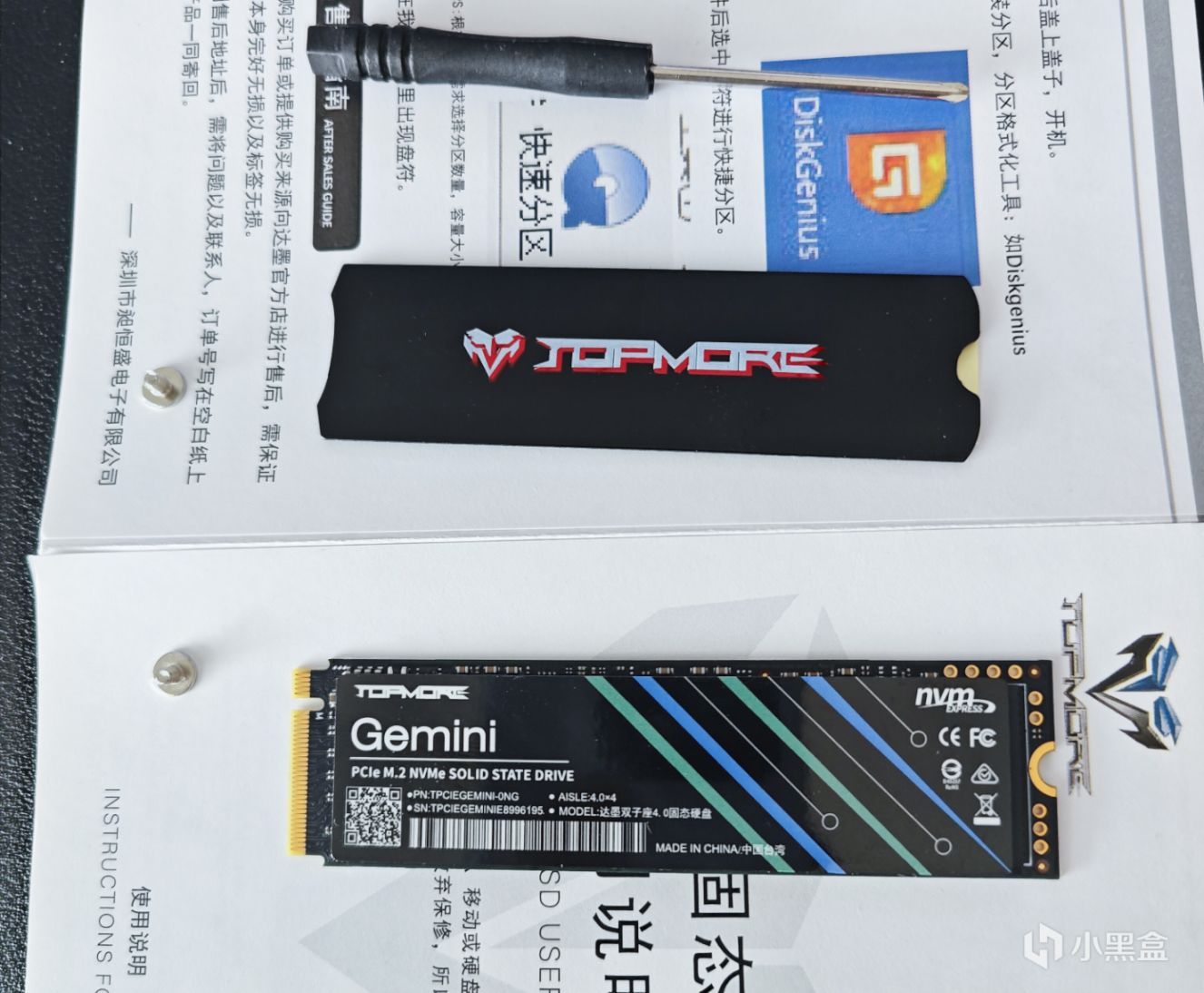 說明書及保修卡,固態硬盤 散熱片 螺絲刀 2個M2螺絲。