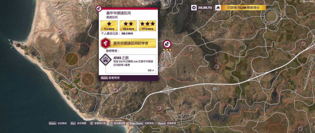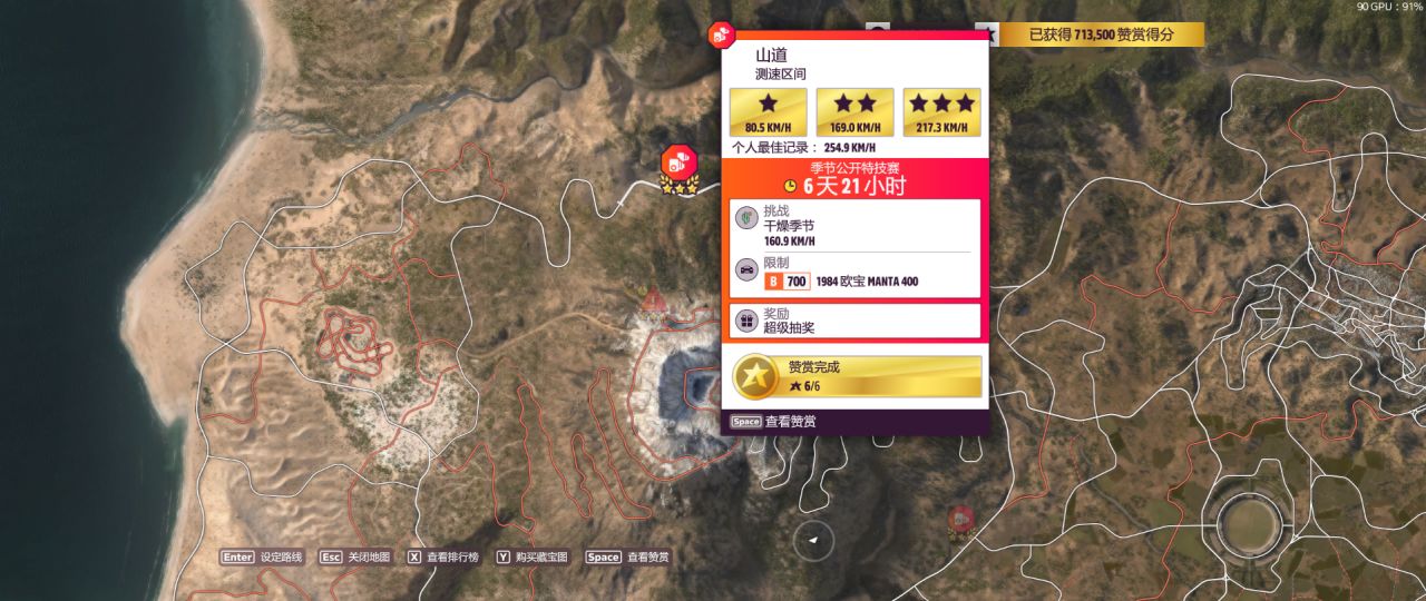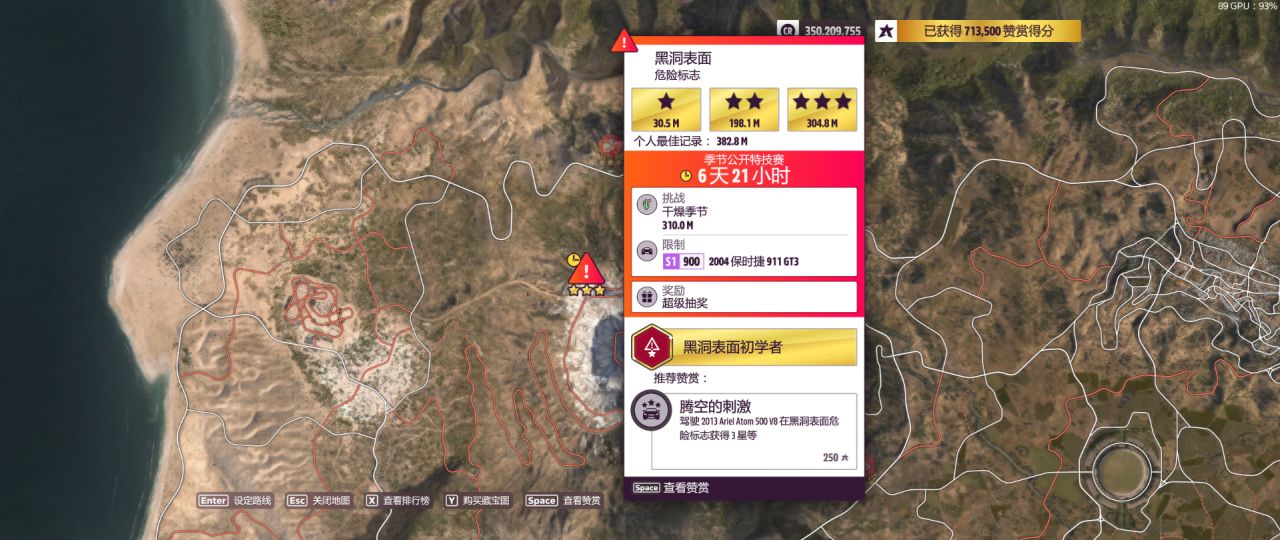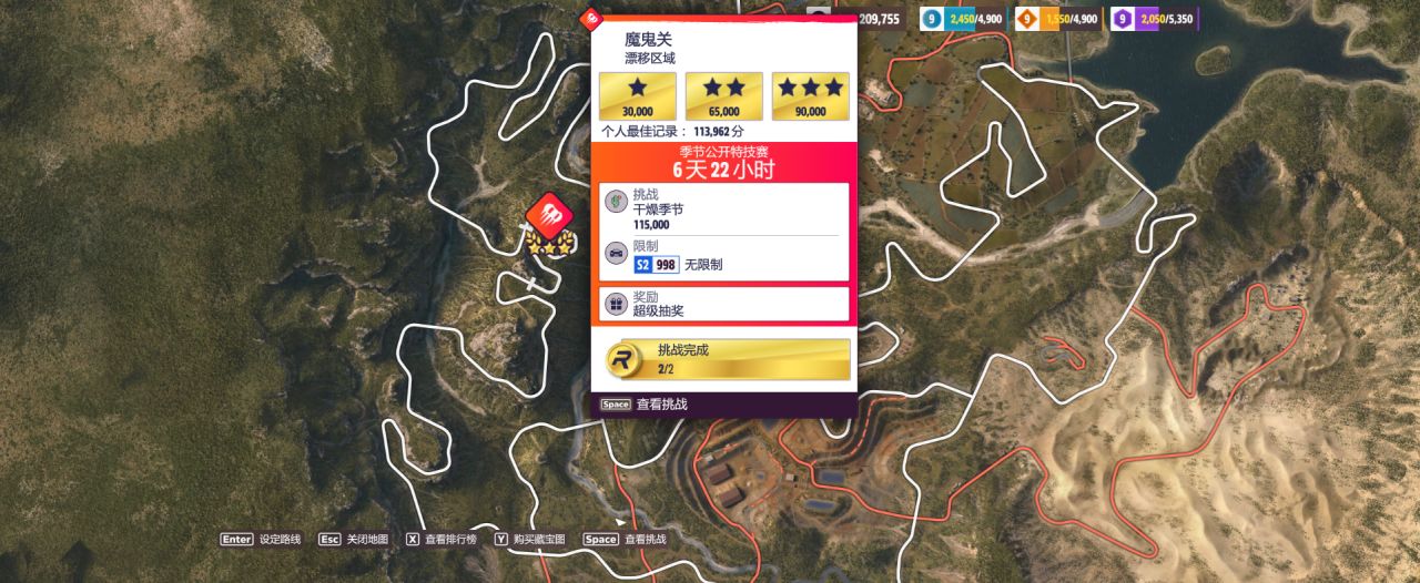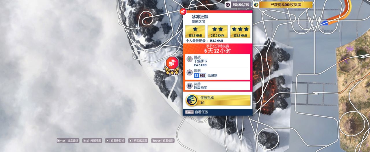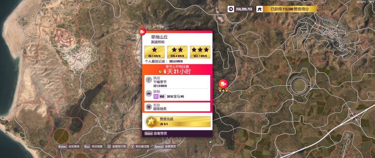 測速照相:旱地山丘,完成獎勵爲超級抽獎(完成條件:321.9km/h)