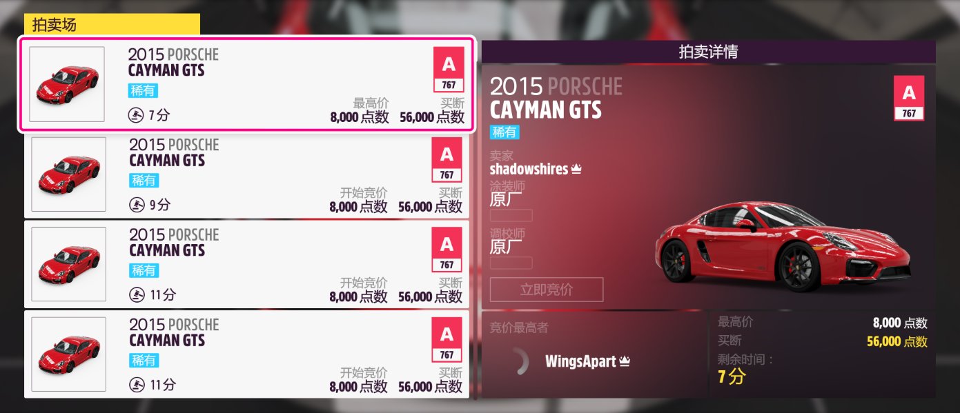 獎勵車輛爲:2015款PORSCHE CAYMAN GTS(好用的賽事車)
