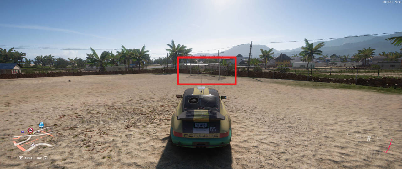 駕駛任意德國車輛破壞一根球門柱(門柱在藍色海灘沙灘上有,位置如圖)