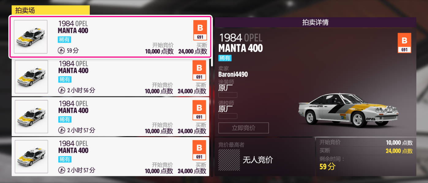 進入前30名,完成獎勵爲1984款OPEL MANTA 400