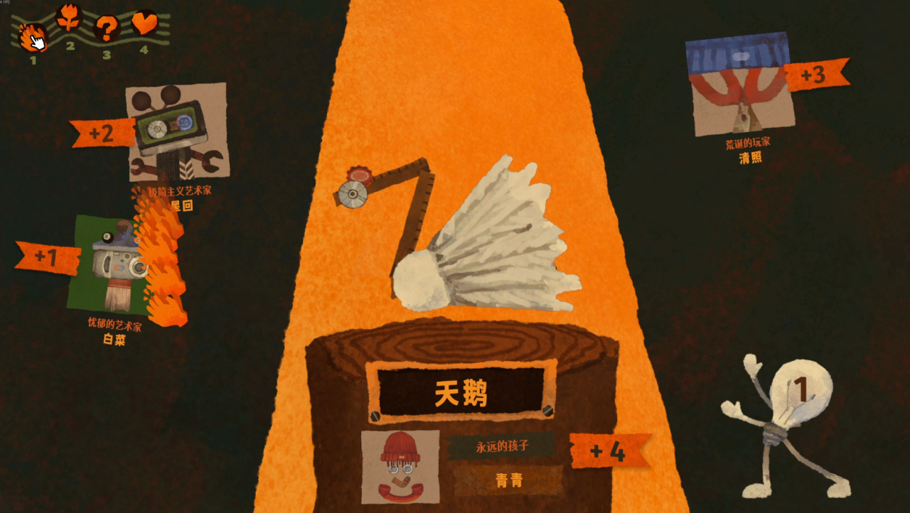 在《破烂艺术家》中,轮到创作的玩家“作画”时,需要从系统给出的三个词语中任选一个进行创作,但选词的时候并不会告知你,会提供哪些“破烂”助你拼贴创作。